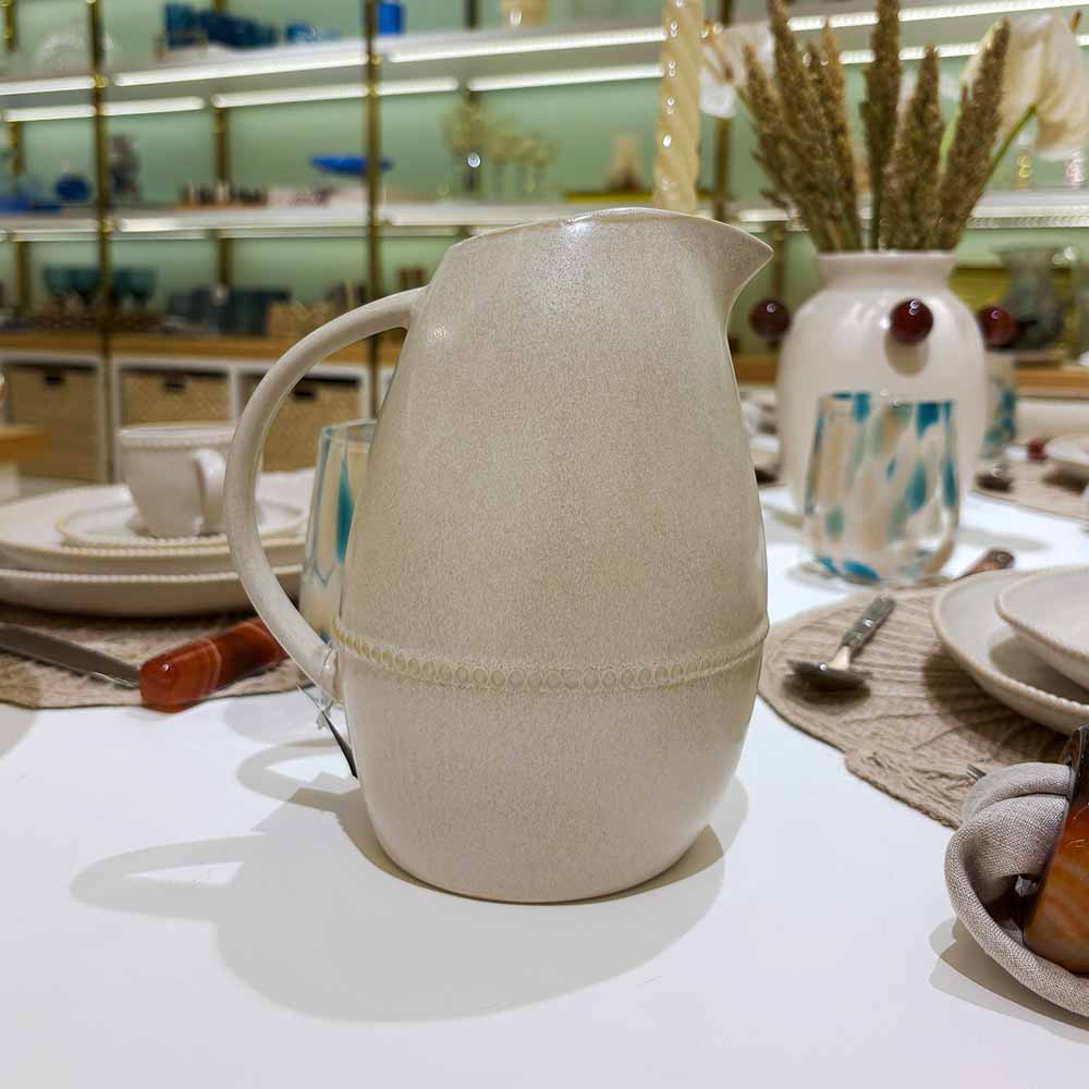 Adicione charme à sua mesa com a jarra em cerâmica Essência. Com design orgânico e elegante, é perfeita para servir com estilo.