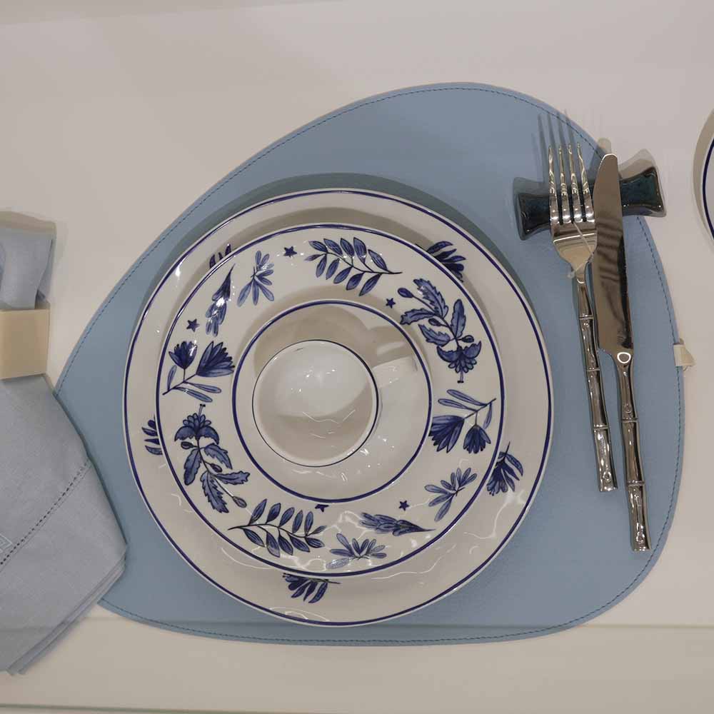 Utilize o lado azul para criar uma atmosfera calma e convidativa, perfeita para almoços descontraídos.