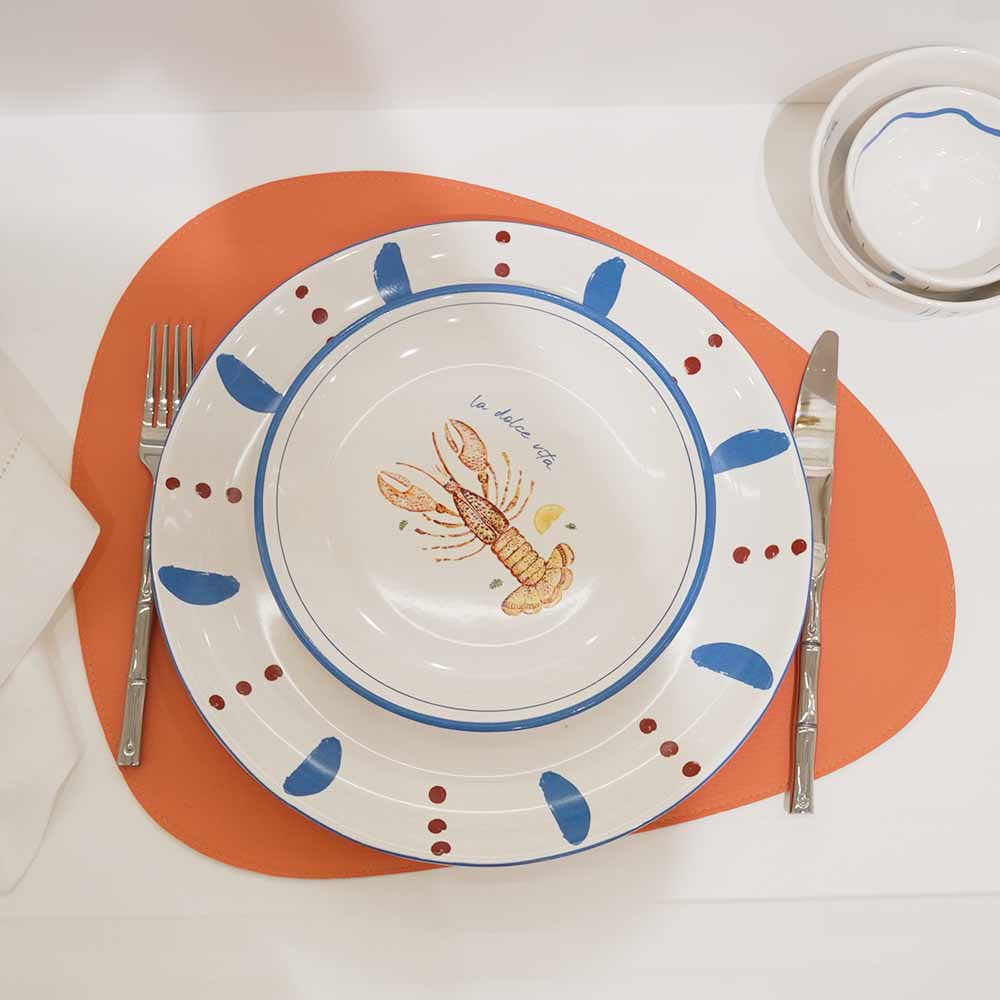 JOGO AMERICANO DUPLA FACE IMPERMEÁVEL ORGÂNICO LARANJA E AZUL 42 CM