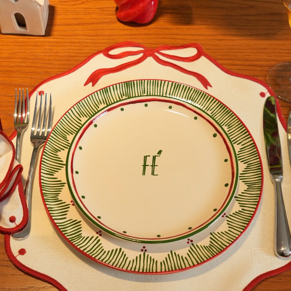 PRATO RASO CERÂMICA PINTADO À MÃO WISHES NATAL