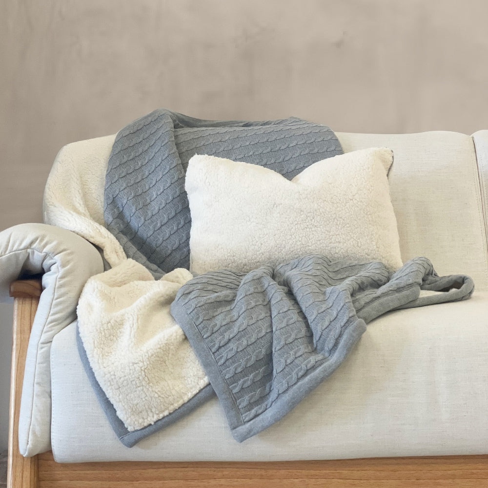 A manta cozy veio para deixar sua casa ainda mais bonita e aconchegante, ela é feita de tricot em um tom de cinza super versátil que vai se adequar perfeitamente com diversas combinações, mas a cerejinha do bolo fica por conta do seu forro, que é de pele ecológica de carneiro, o que traz uma sensação de conforto única.