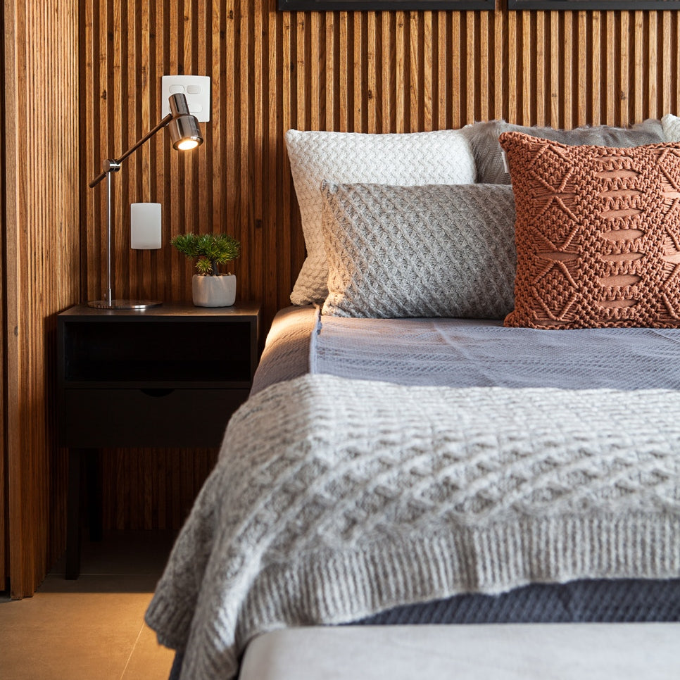 Para completar o look, combine a mantinha com as almofadas da mesma linha em mix com outras almofadas de Tricot Plus.
