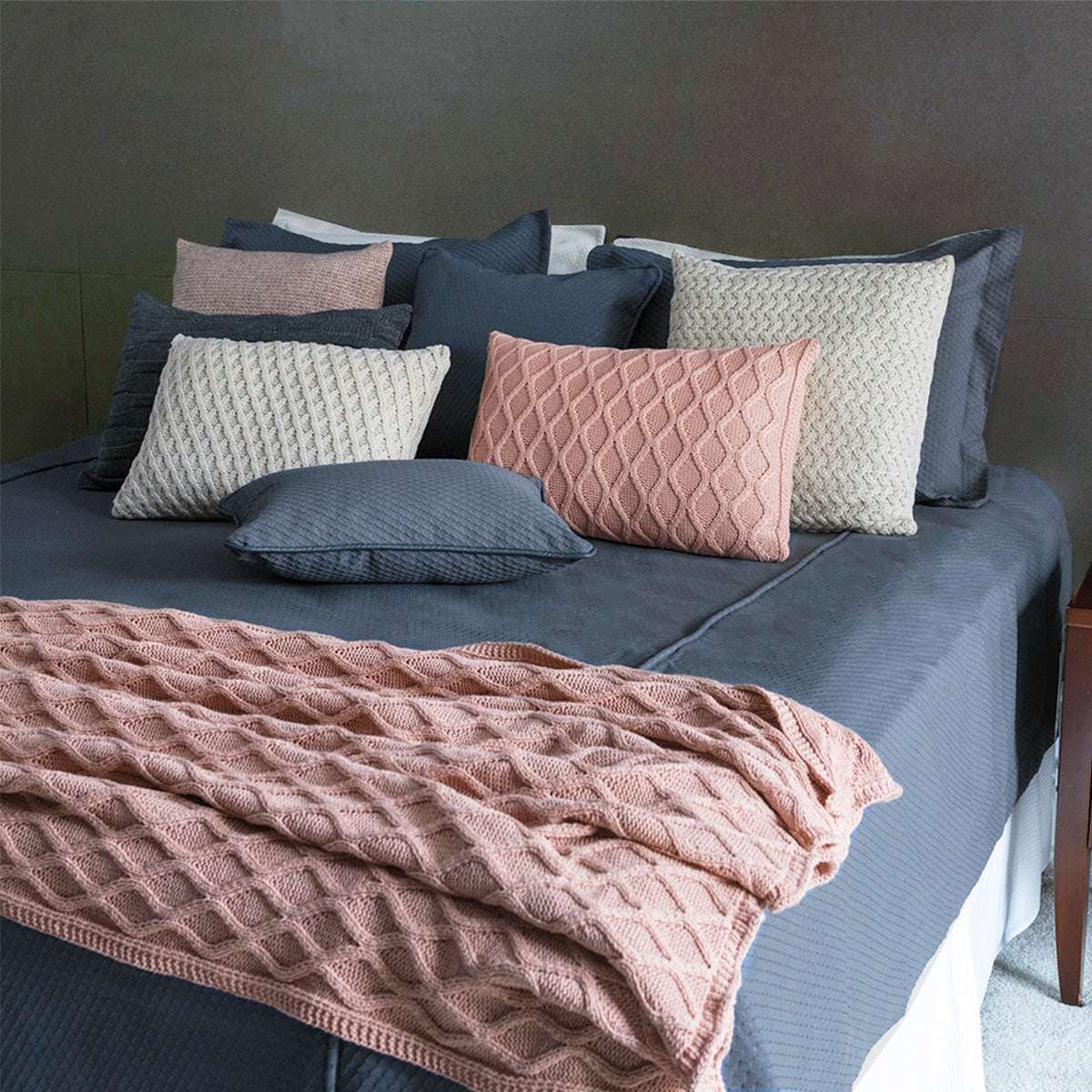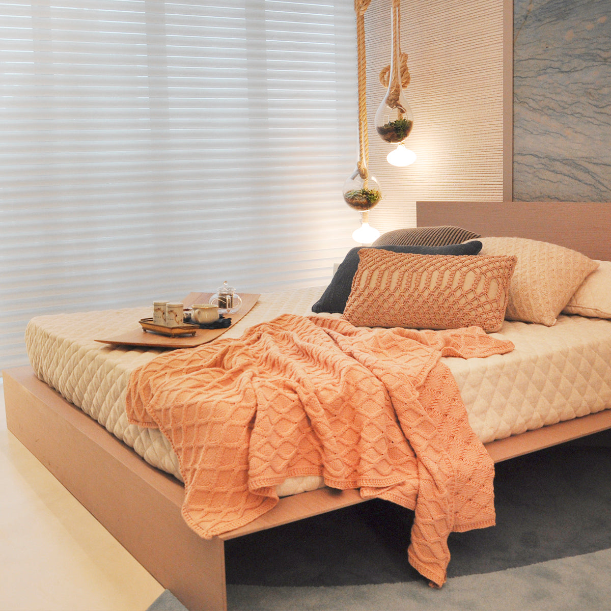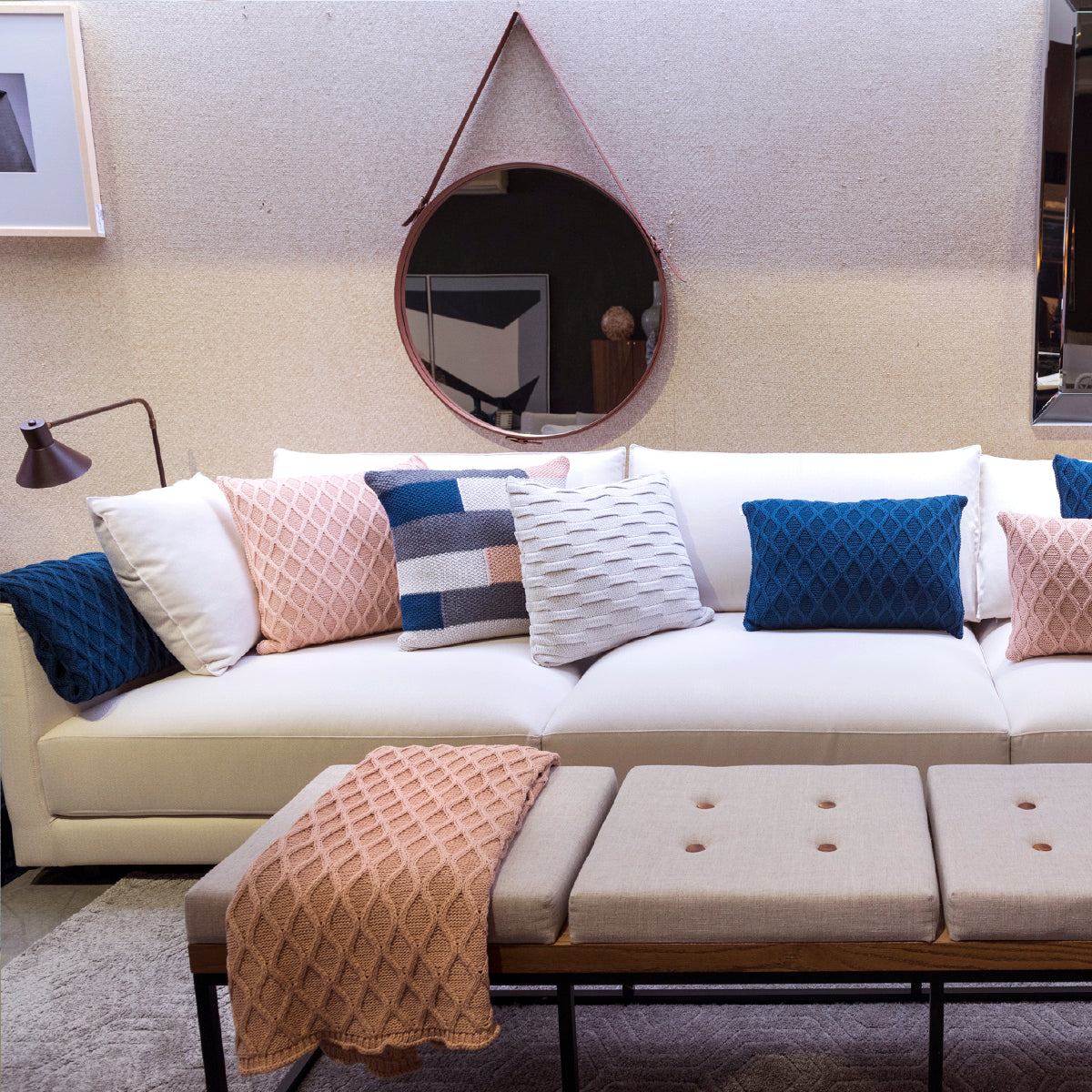 Para que esse composé fique muito mais charmoso, combine a mantinha com um mix de almofadas Tricot Plus Gotas e Tricot Plus Bricks!