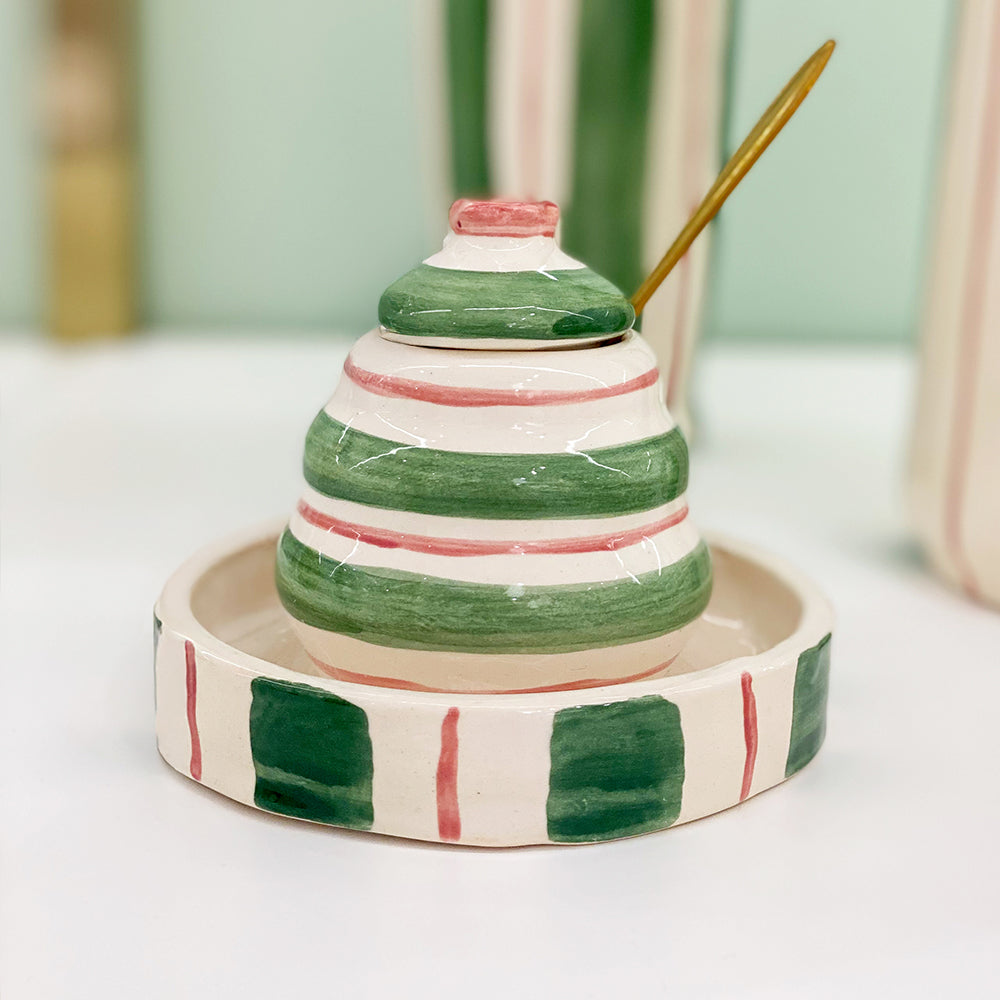 MELEIRA CERÂMICA ARTESANAL COM PRATINHO AGATA VERDE