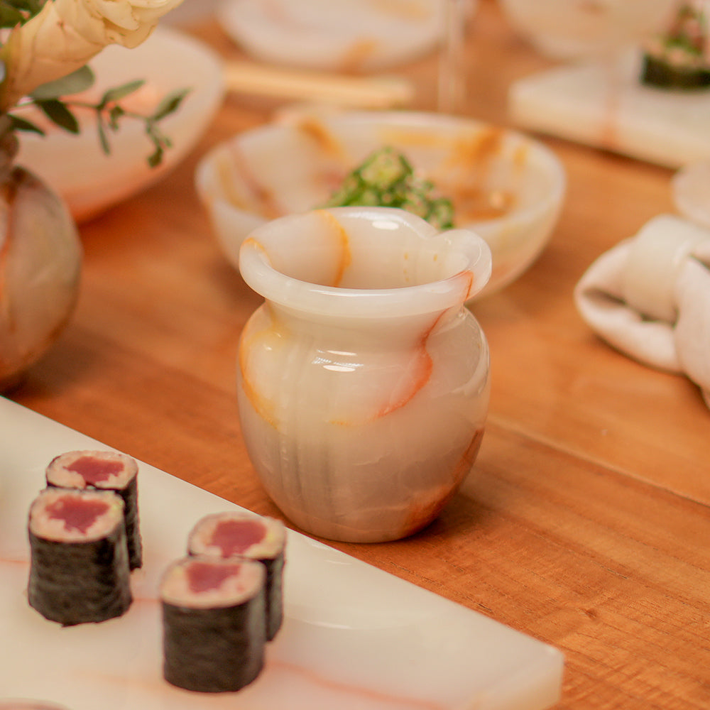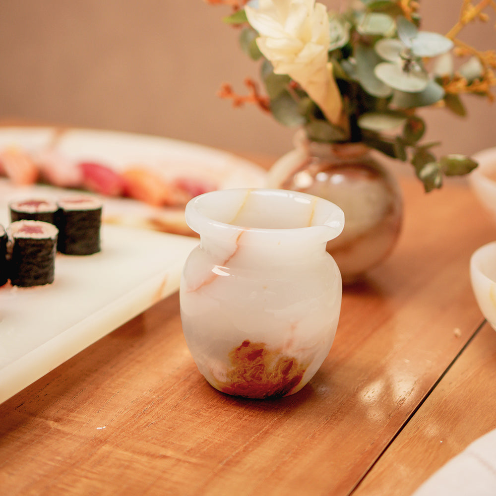 Para preservar a cor e o brilho natural do ônix, evite expor a mini jarra à luz solar direta por longos períodos.