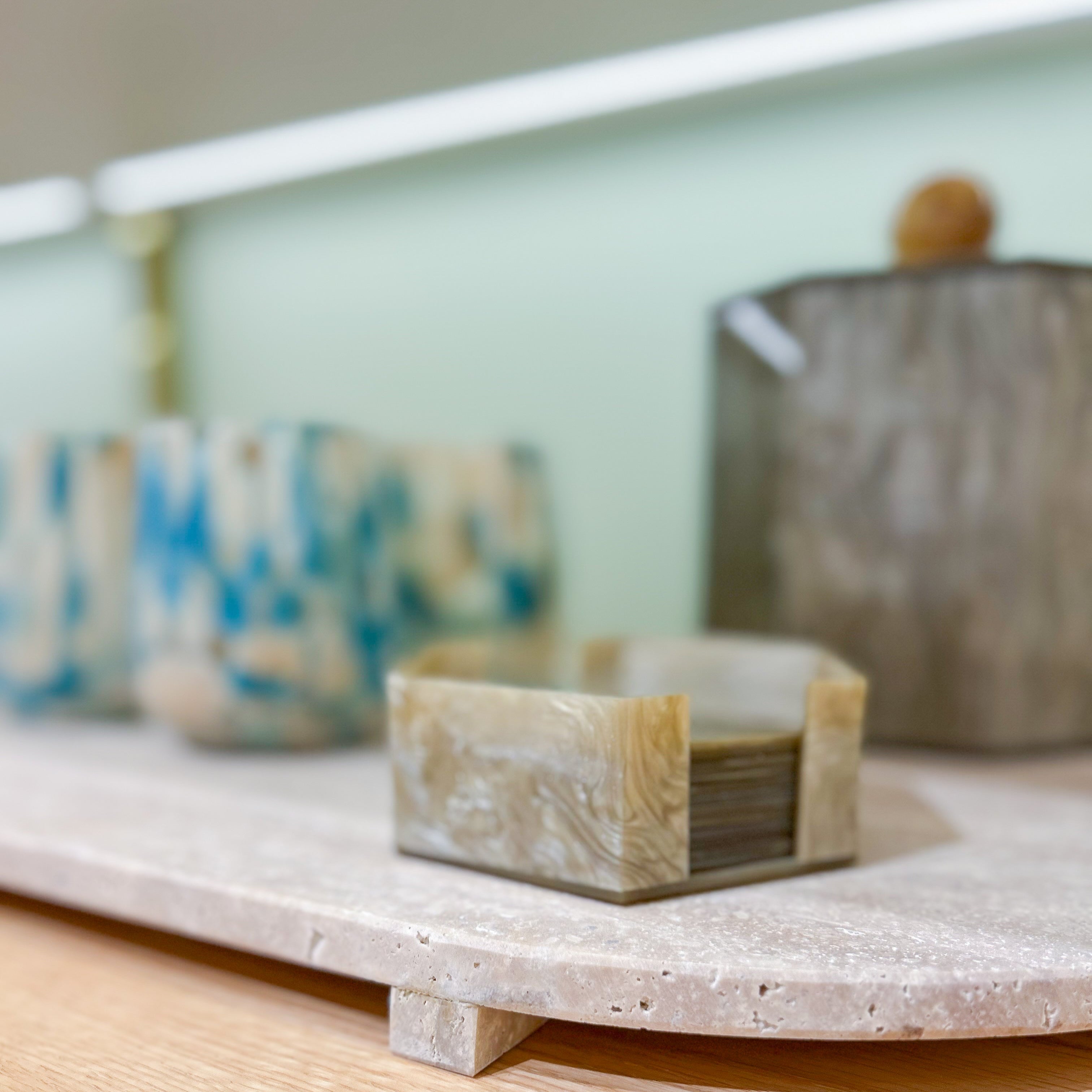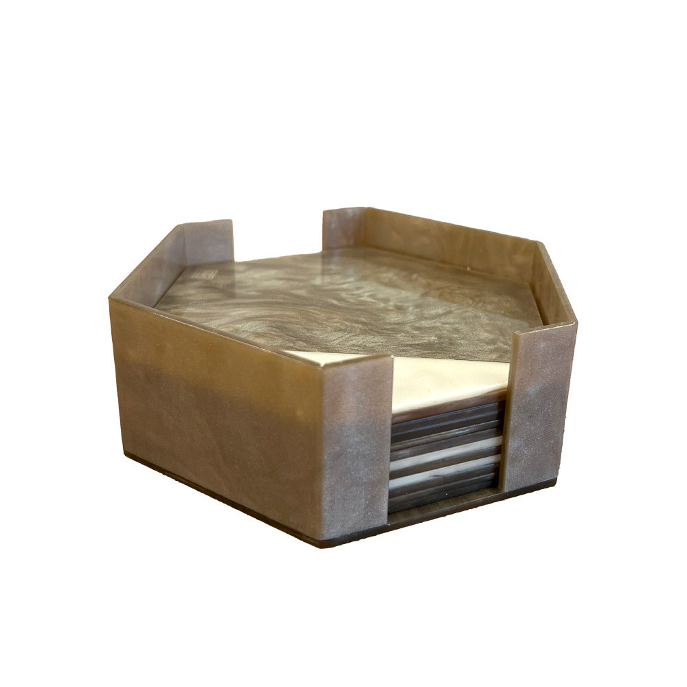 PORTA COPO MÁRMORE TRAVERTINO 10CM C/6 PECAS E SUPORTE