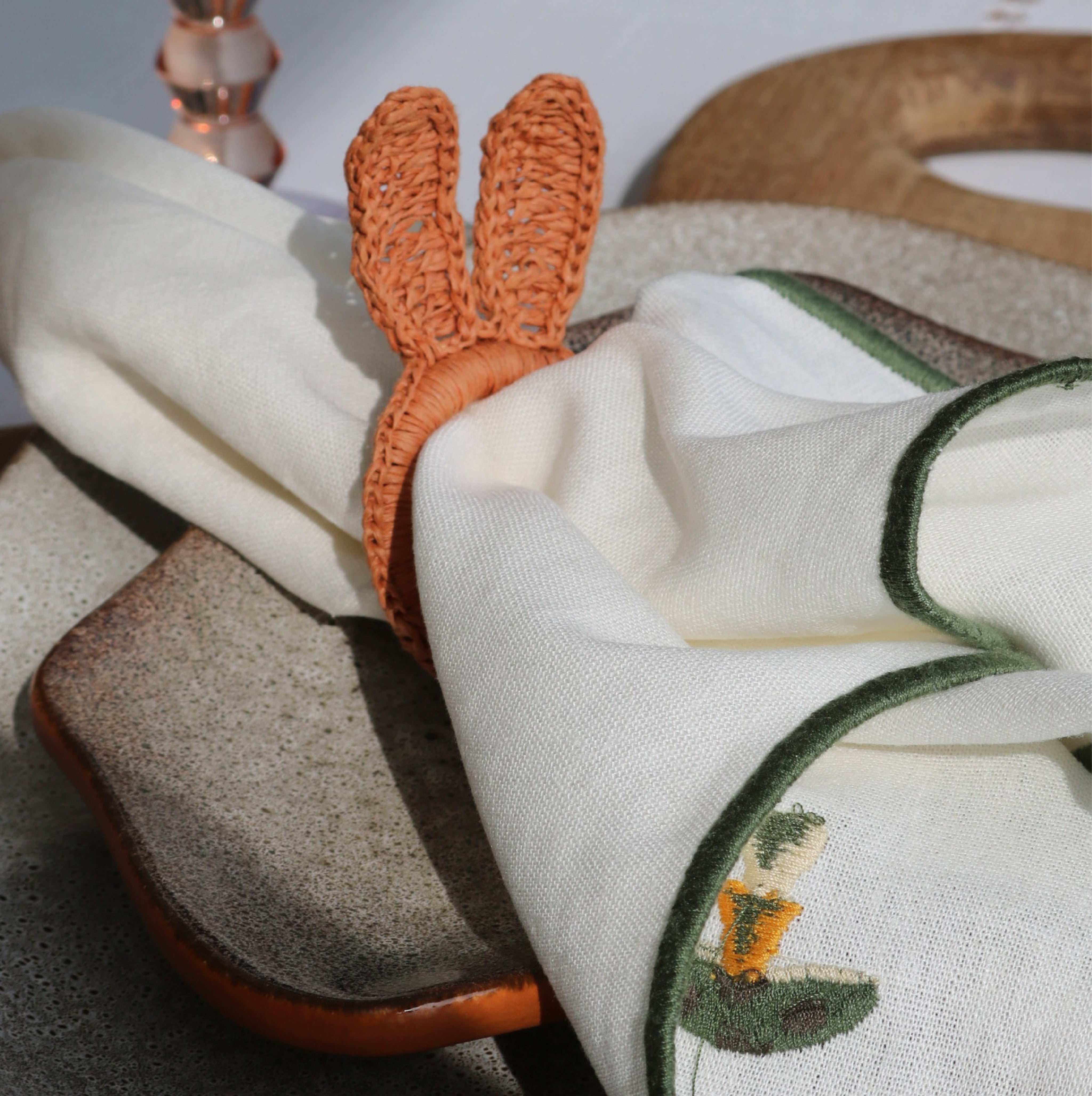 Para uma mesa temática em poucos minutos, o porta guardanapo coelho tramado terracota é a pedida certa. Feito a mão, com fibras naturais é a peça que vai deixar a sua mesa no clima de páscoa, e já que é uma data tão especial nada melhor do que deixar sua composição mais bonita para abrilhantar ainda mais os momentos ao redor da mesa.