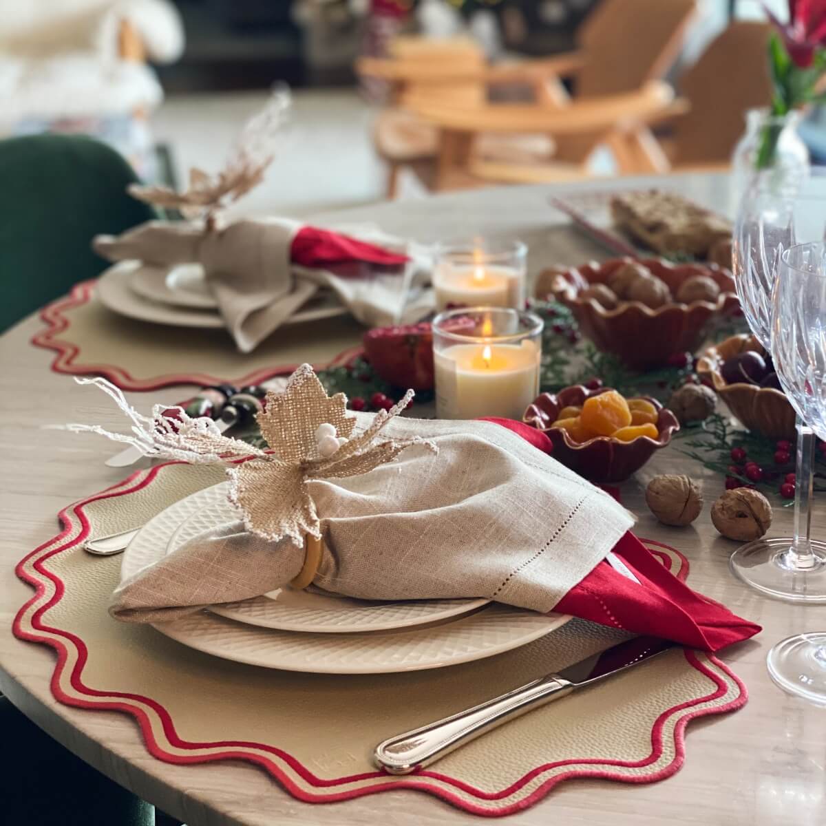 Você pode usá-la em mesas com jogos americanos e guardanapos lisos em qualquer cor, e já terá uma composição de Natal.