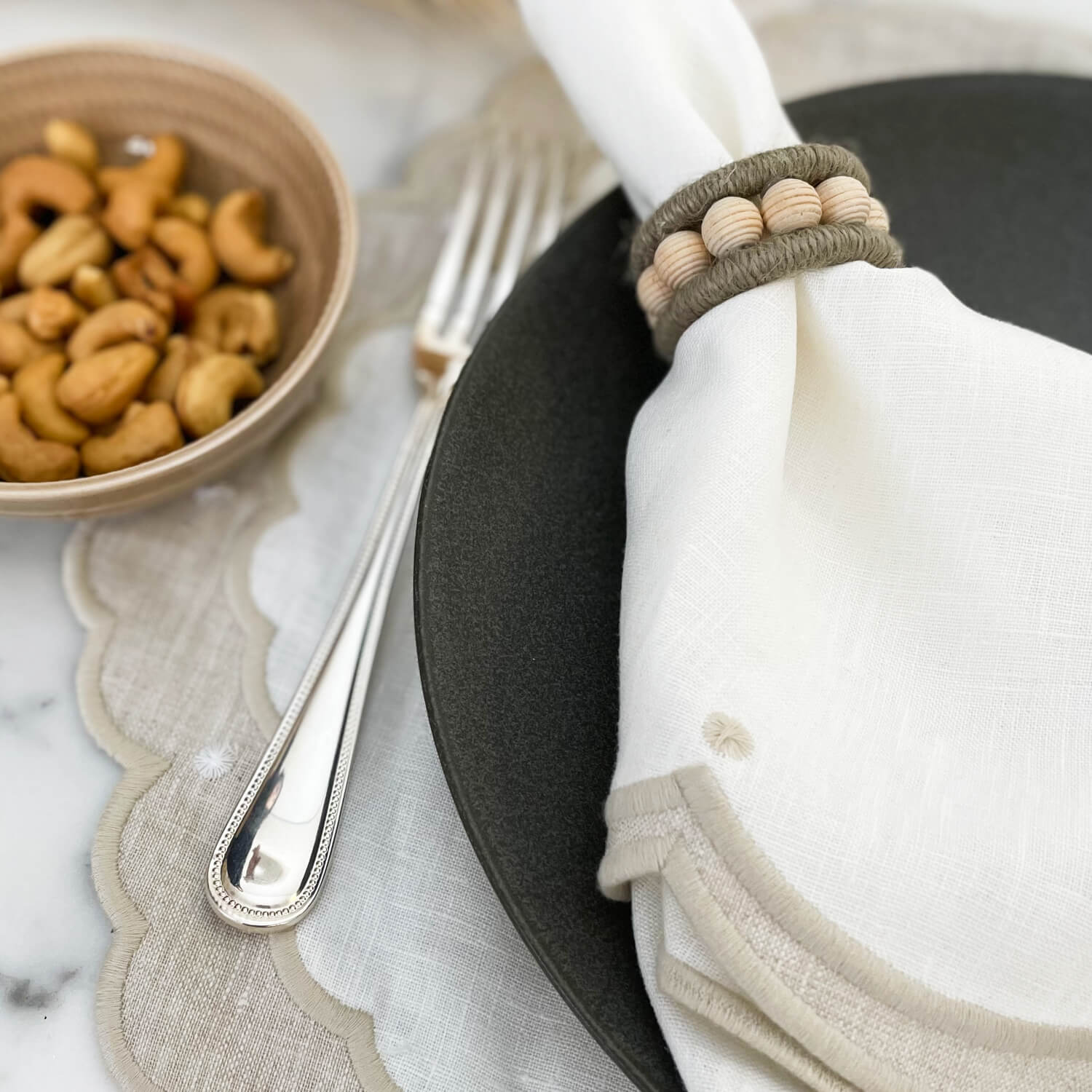 Sabe aqueles dias em que a mesa falta algum detalhe especial ? Pensando em te ajudar a dar o toque final na composição a Lolahome desenvolveu para você o porta guardanapo pomponete verde oliva, feito com fibras naturais e contas de madeira, ele é produzido artesanalmente e traz charme e elegância para sua mesa.