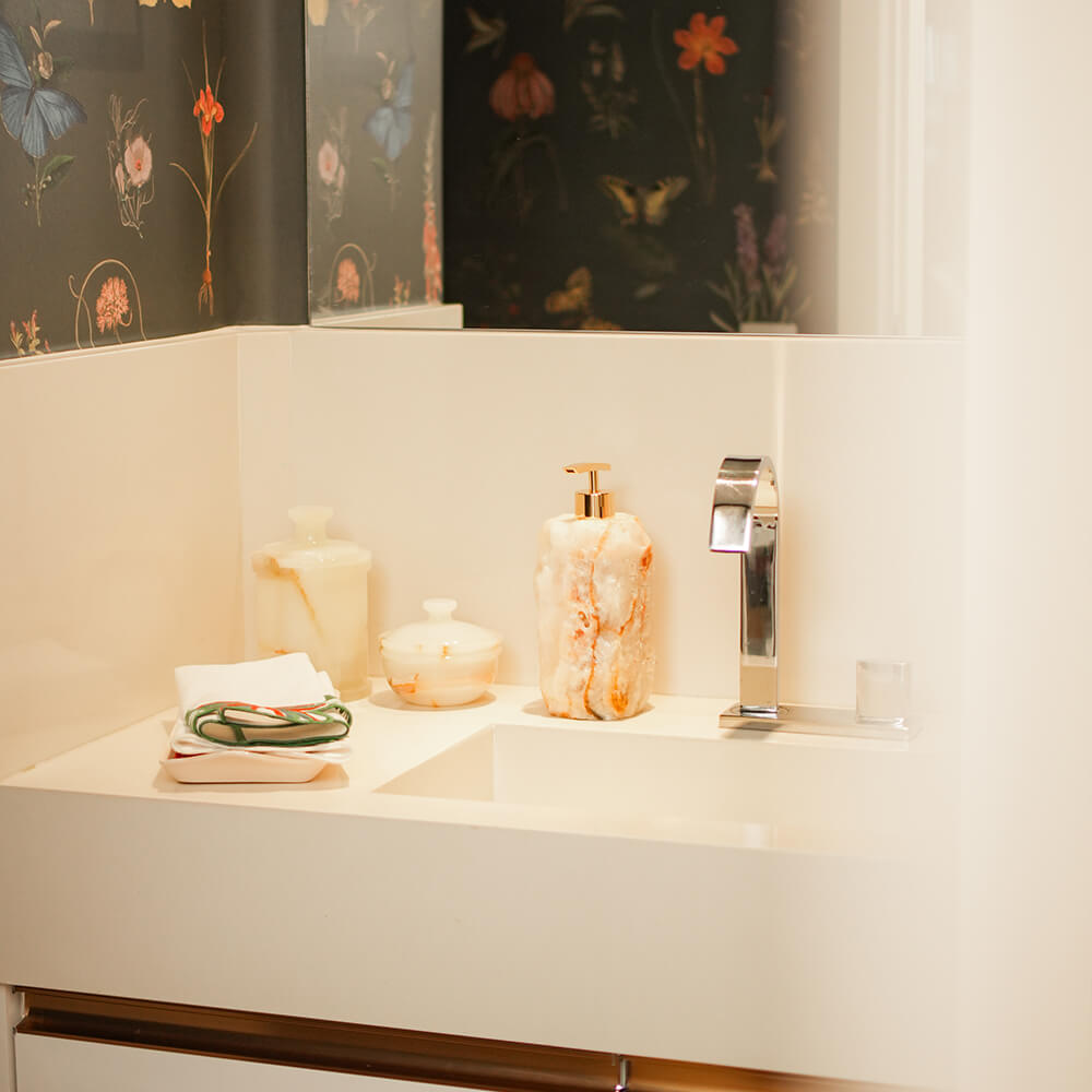Você pode usar essa linda peça de ônix para compor ambientes de várias maneiras. Além de ser um elemento decorativo, ele é um dispenser de sabonete, trazendo elegância ao lavabo ou banheiro. Sua textura e cor únicas adicionam um toque sofisticado, tornando-a perfeita para complementar a decoração e organizar o espaço. Com criatividade, essa peça se torna uma aliada na funcionalidade, oferecendo praticidade com estilo enquanto realça a beleza do ambiente!