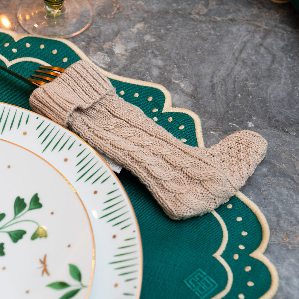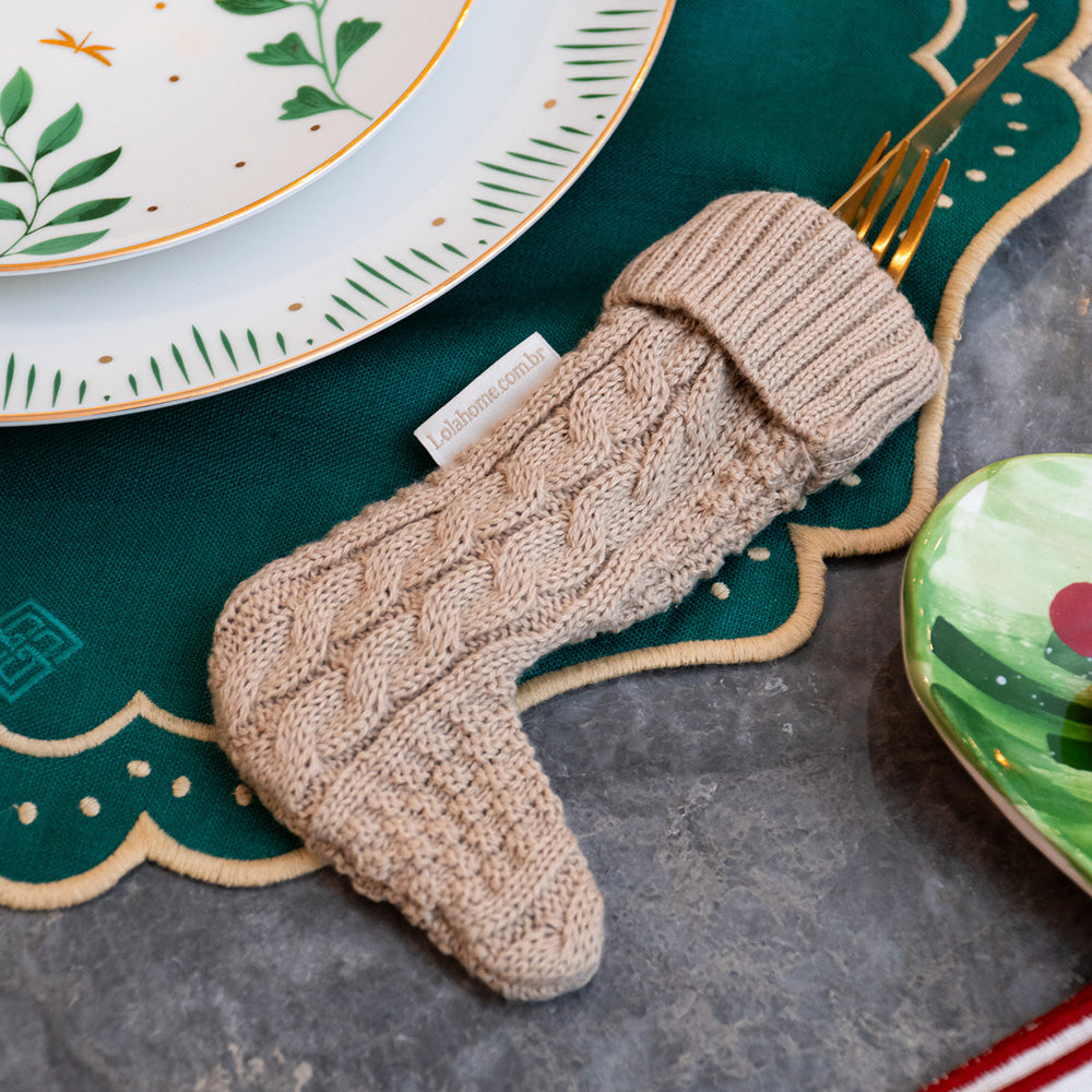 PORTA TALHERES DE NATAL BOTINHA TRICOT BEGE