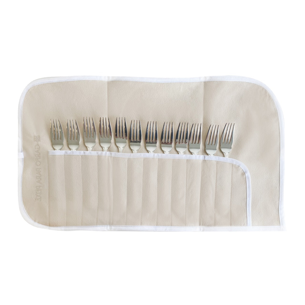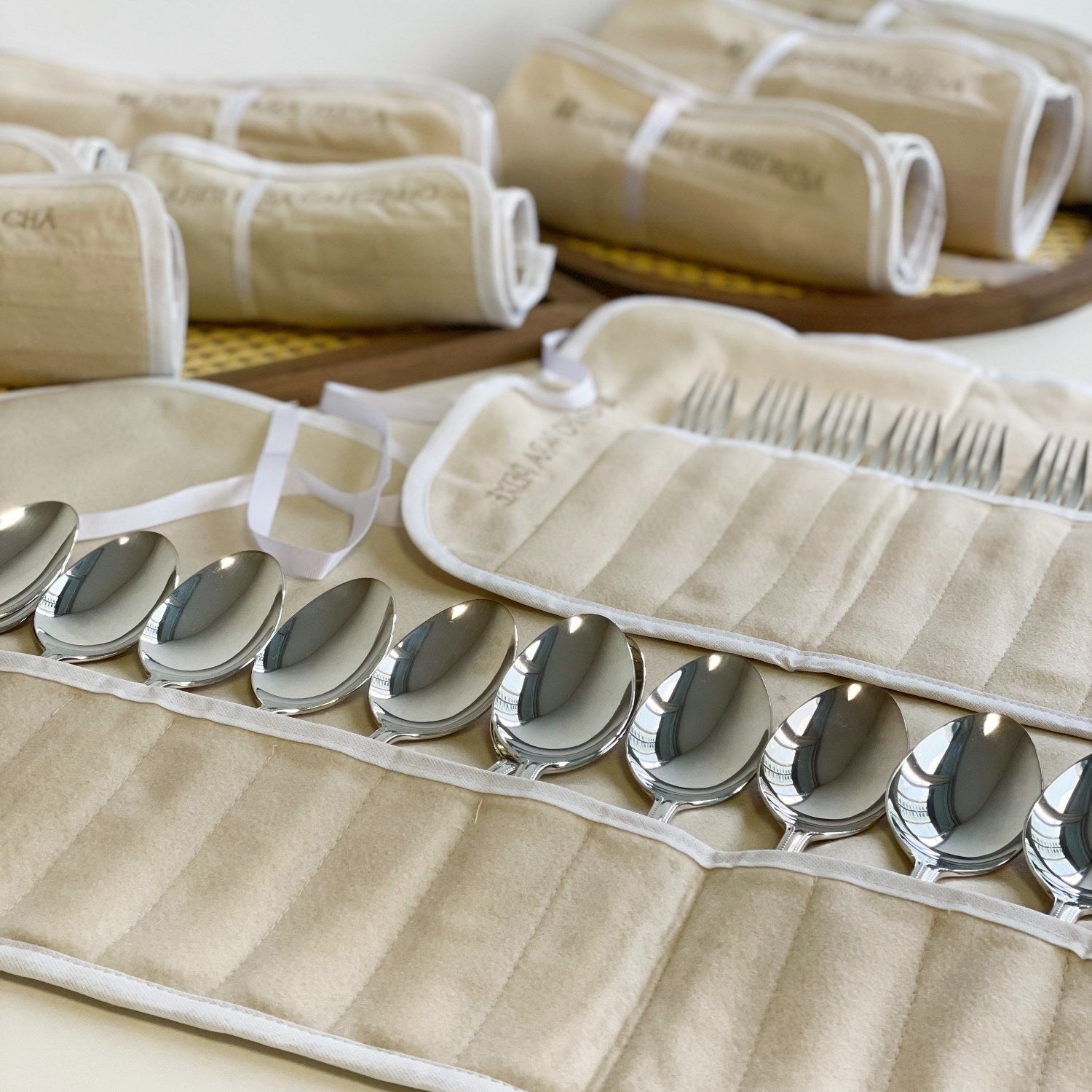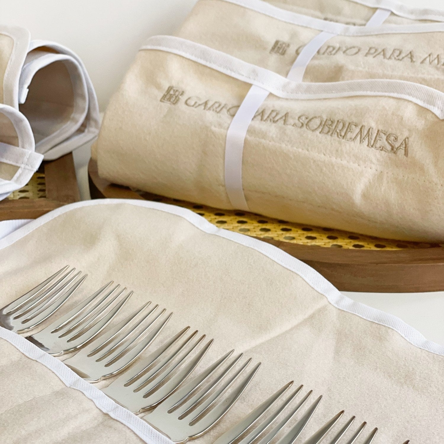 Ele possui acabamento em viés, vem bordado para qual talher é o estojo. Além disso, seu tecido não risca, ou seja, a combinação perfeita de praticidade e cuidado. Seu tom de bege é clássico e ele possui fechamento com uma fita de gorgorão. Não perca mais tempo nem espaço com aqueles estojos gigantes de faqueiro, e aproveite ainda mais os momentos ao redor da mesa.