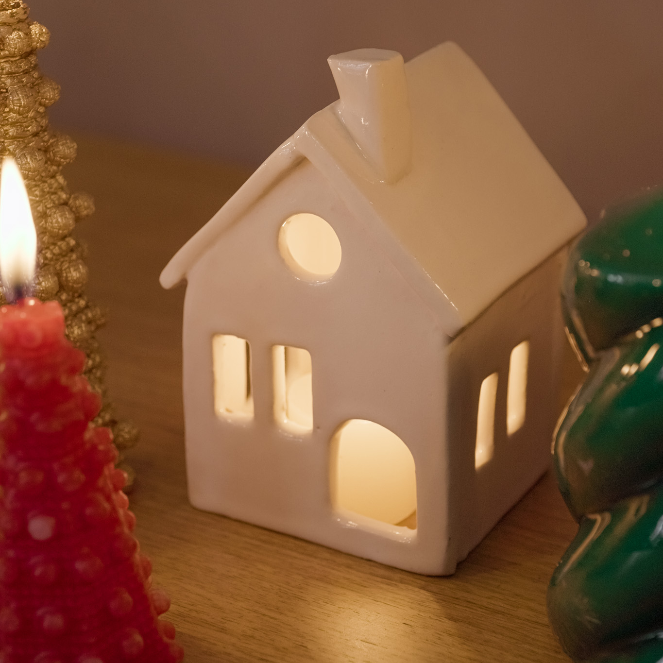 Com sua delicada cerâmica e design único, essa peça é perfeita para criar uma iluminação suave e acolhedora. Imagine só a atmosfera mágica que será criada quando você combinar esse porta vela com as velas em formato de casinha e pinheirinho, formando uma encantadora vila de Natal.