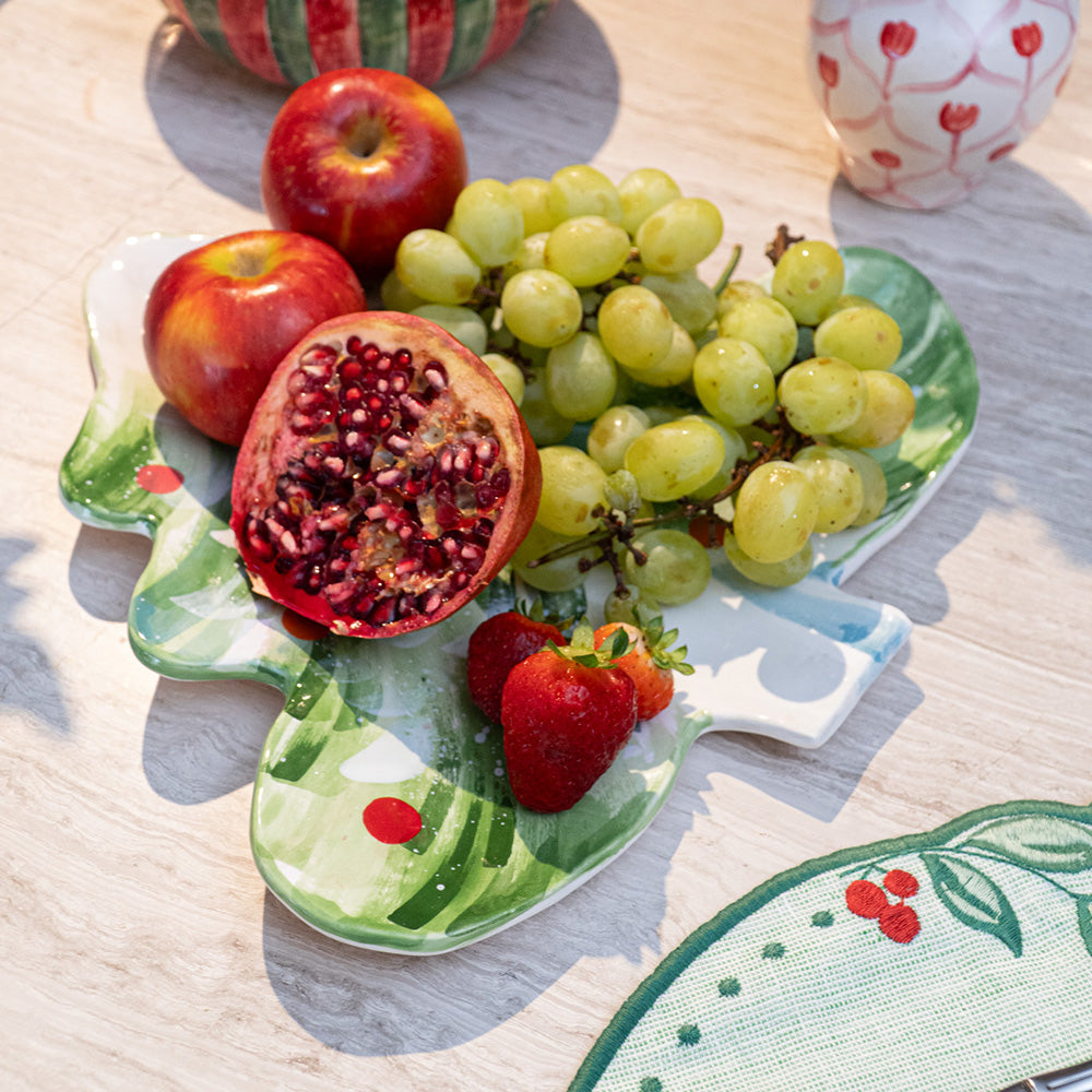 Para servir aperitivos no Natal, utilize um prato de cerâmica artesanal com pintura manual. Arrume queijos, frutas secas e biscoitos de maneira atrativa, complementando com pequenas tigelas. Decore a mesa com velas e arranjos natalinos, como azevinho, para criar um ambiente festivo. Esse prato é perfeito também para doces tradicionais da época. Combine-o com outras peças da mesma coleção para uma apresentação harmoniosa. Após o uso, limpe com um pano suave e evite produtos químicos para proteger a pintura. Dessa forma, seu prato se tornará um elemento encantador nas suas celebrações de Natal!
