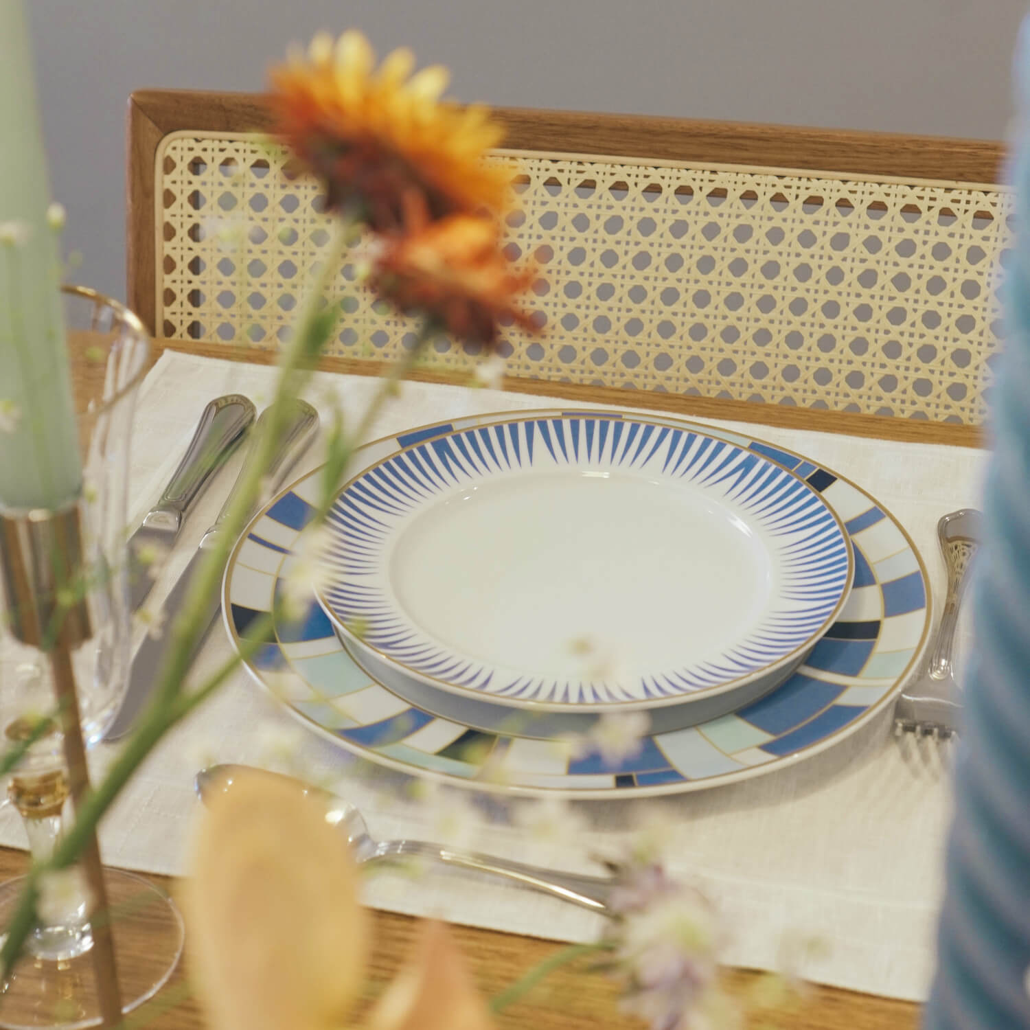 Com vários nuances de azul, a Coleção Gold Déco foi desenhada para abrilhantar momentos de celebração. Iluminados pelos frisos de ouro a composição se torna chic e suave