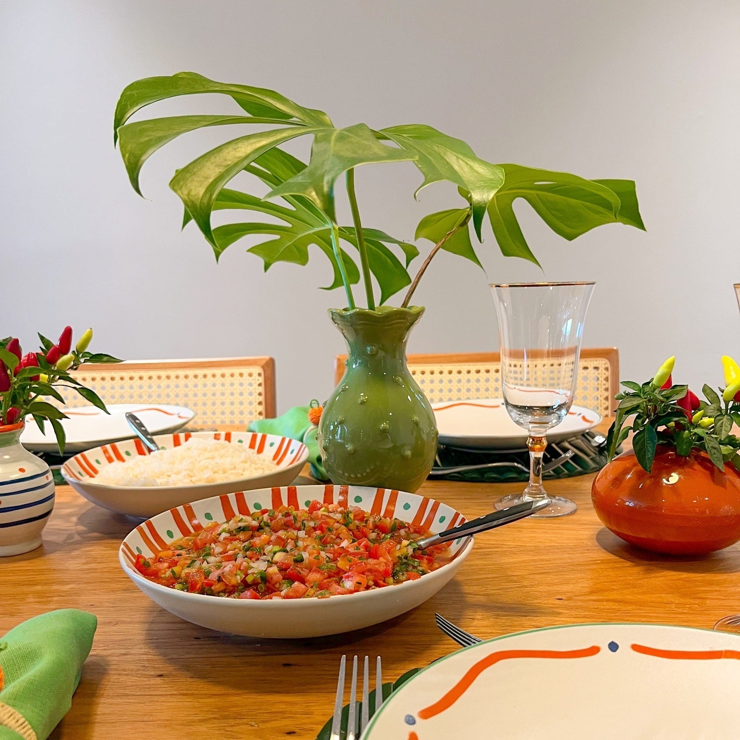 Acreditamos que a hora de refeição é um momento único e que gera memórias incríveis e duradouras e para deixar ainda mais especial, a coleção toscana é completa, vai desde o jogo americano até os mini vasinhos de cerâmica, tudo para deixar a mesa posta completa e original.