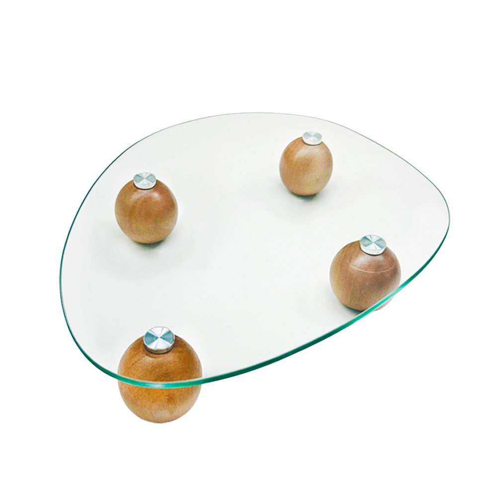 O Prato de Vidro Orgânico com Base em Esferas de Madeira G da Lolahome é a peça ideal para quem ama reunir família e amigos ao redor da mesa posta.