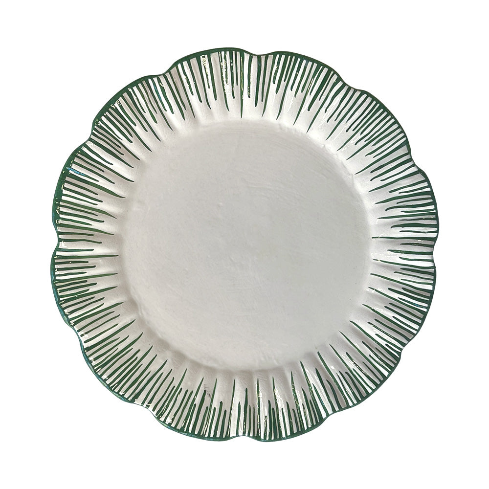PRATO RASO CERÂMICA FEITO À MÃO BLOSSOM VERDE NATAL