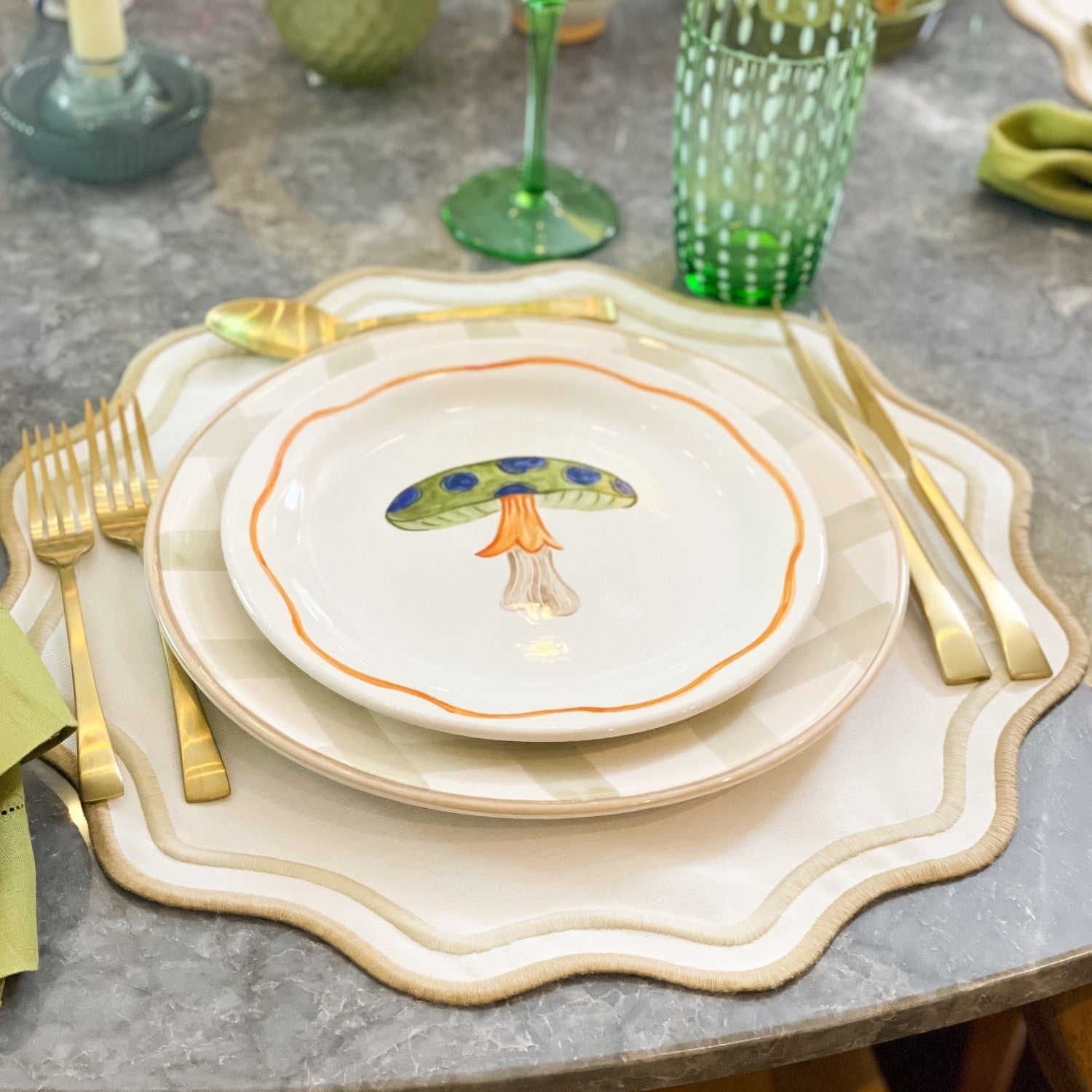 PRATO DE CERÂMICA SOBREMESA FEITO À MÃO COGUMELO BEGE 22CM