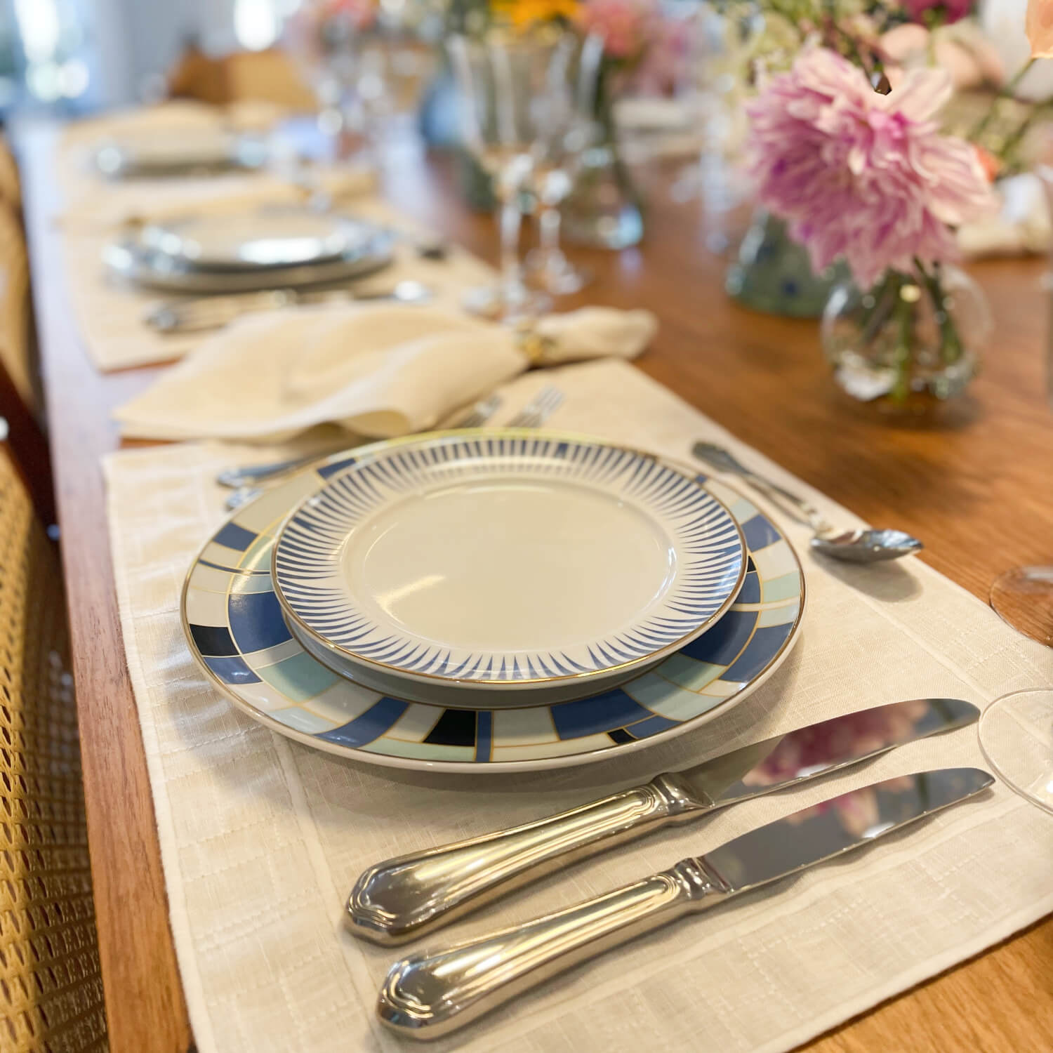 A linha gold déco é completa, vai desde o prato de sobremesa até a xícara de café, então, na hora de montar sua mesa, aposte nessa linha. Use com o jogo americano de linho puro Déco e guardanapos de linho branco, complete com arranjos de flores para finalizar.