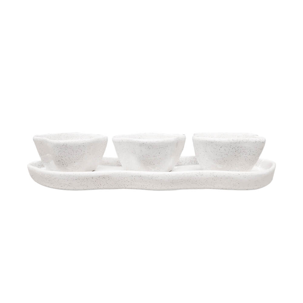 SET APERITIVO BANDEJA E 3 BOWLS CERÂMICA AREIA BRANCA
