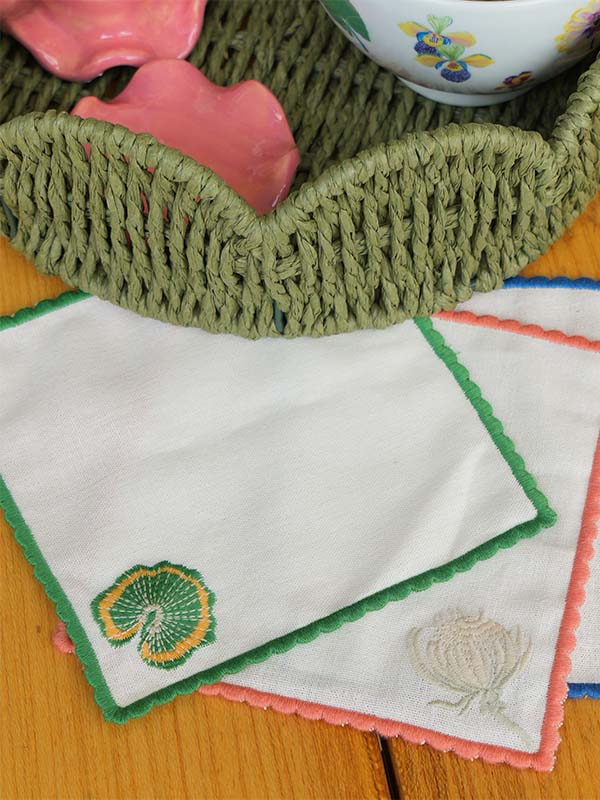 SET GUARDANAPOS DE COQUETEL EM LINHO FLOWERSCAPE 6 PEÇAS