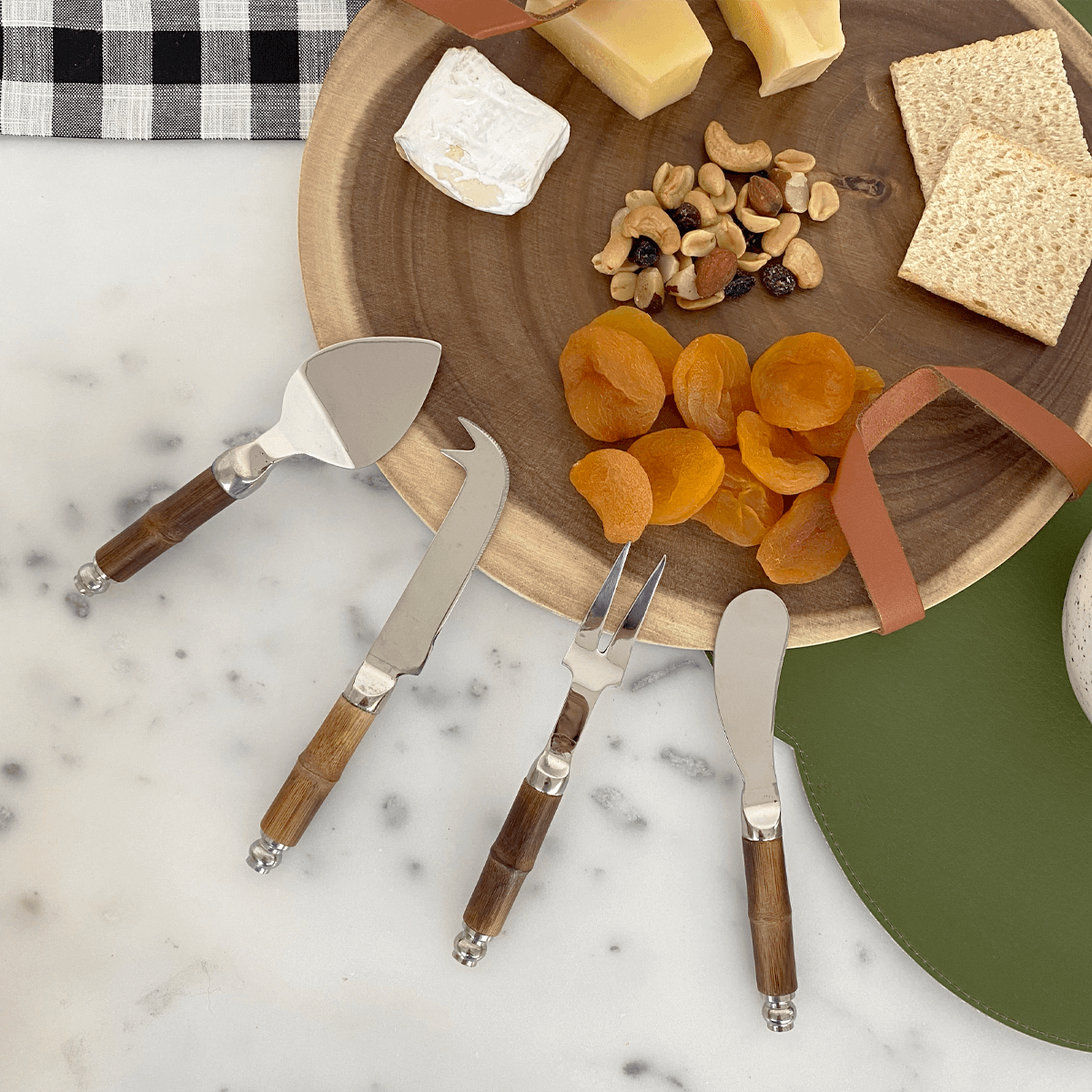 TÁBUA DE MADEIRA COM ALÇA EM COURO 30 X 27,5 X 2 CM