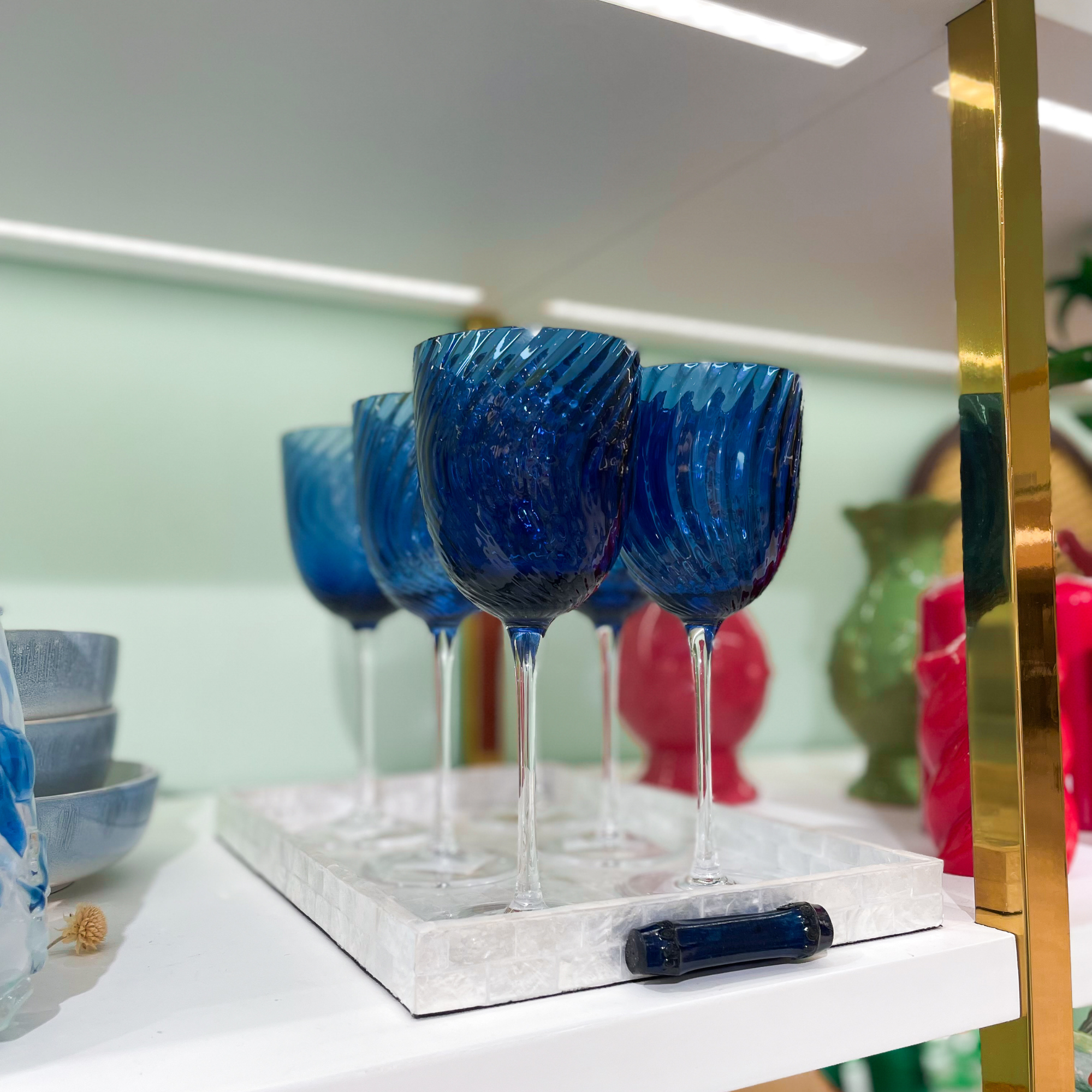 A taça de vidro Ocean é puro estilo e descontração, perfeita para dar um toque fresh à sua mesa. Com um azul deslumbrante e uma textura que lembra as ondas do mar, essa taça vai trazer a brisa do oceano para seus momentos especiais.