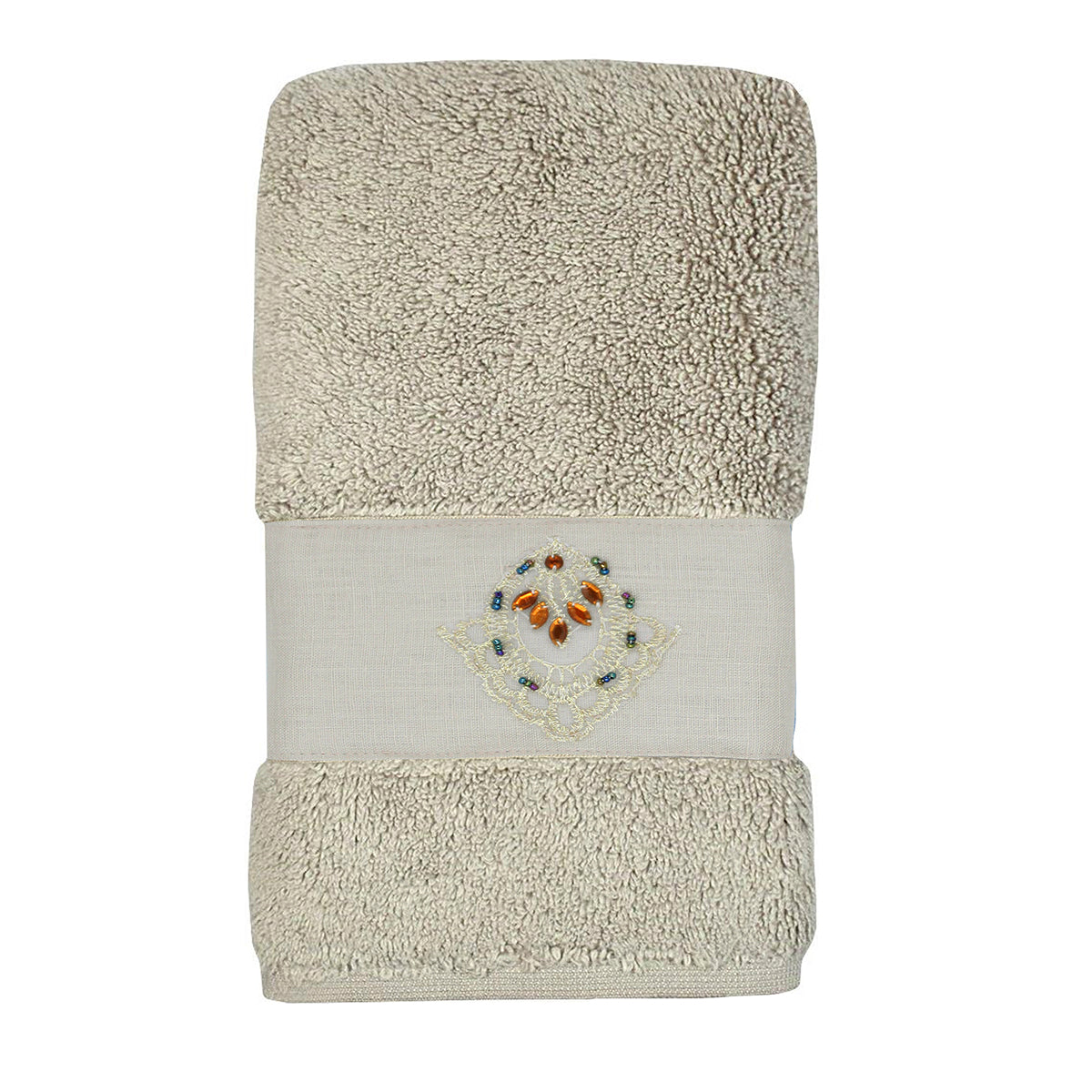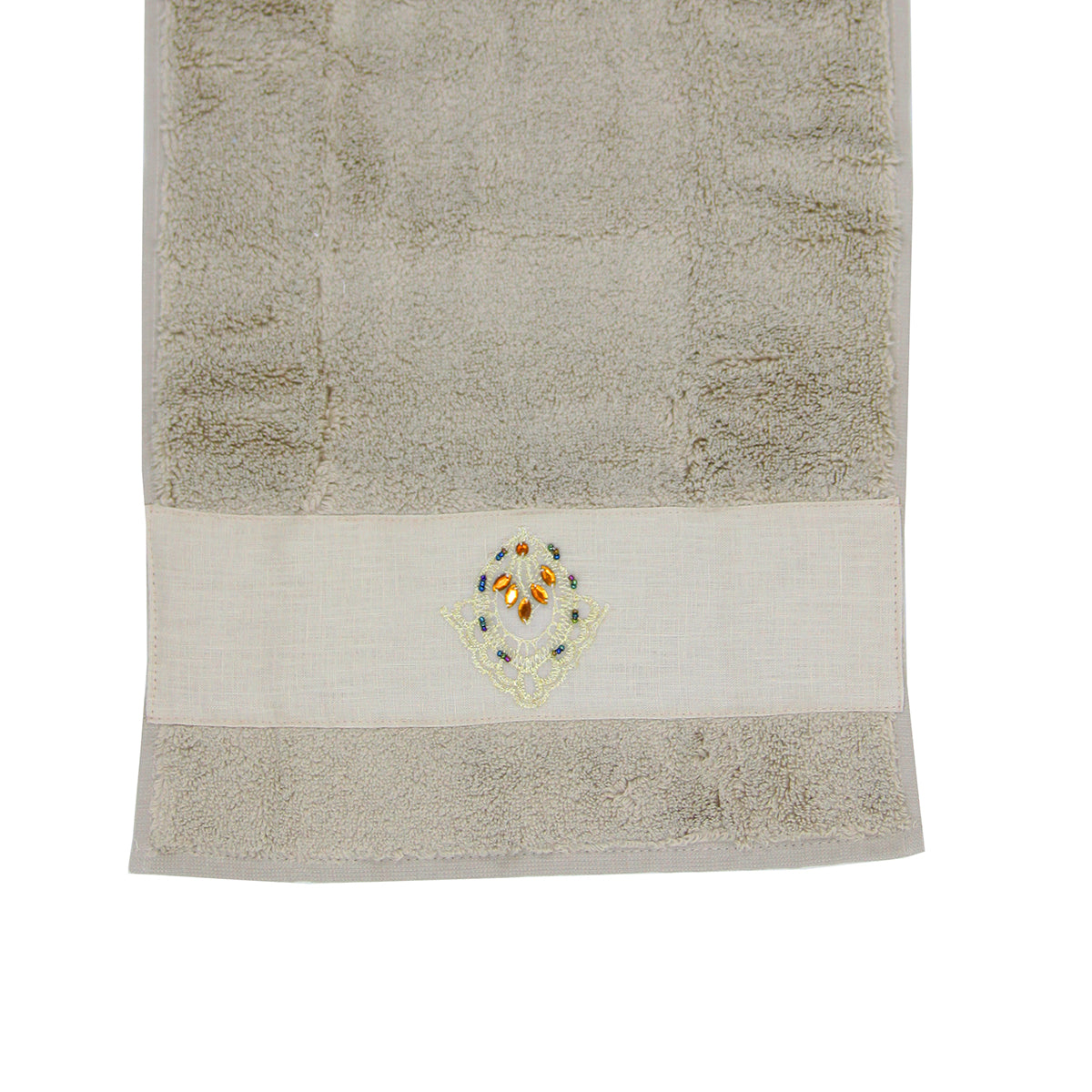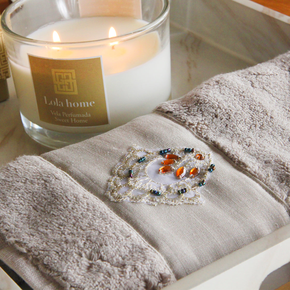 O toalha de Lavabo Maya tem um aplique super delicado com pedrarias.