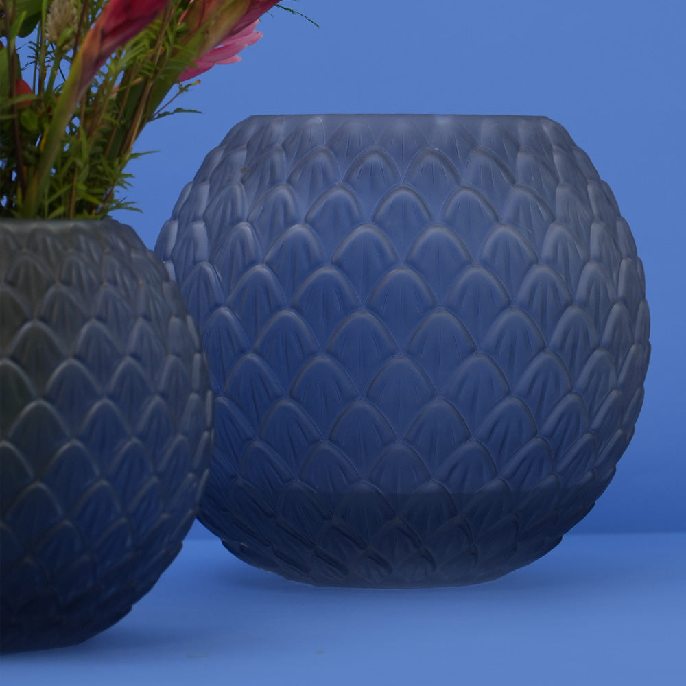 VASO DE VIDRO AZUL ESCAMAS 19X18X18