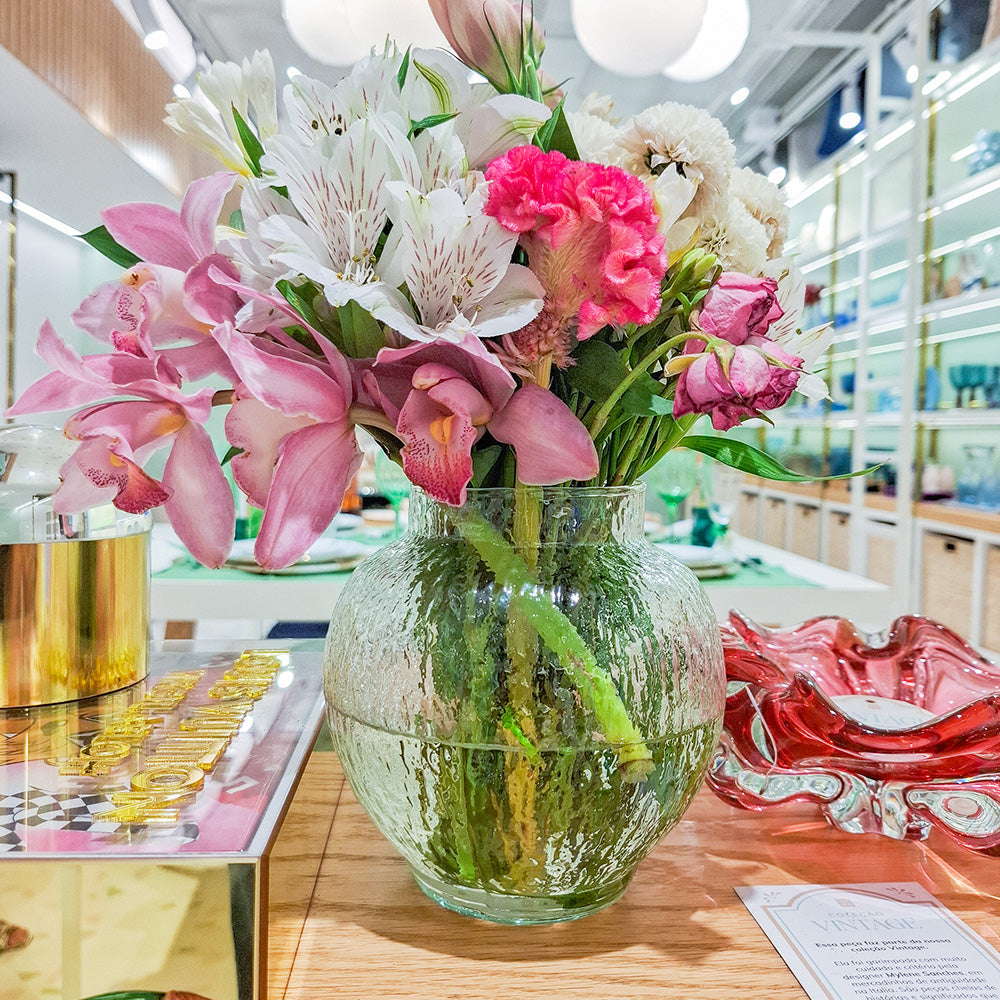 Vaso de Vidro Kaori M, uma verdadeira obra-prima artesanal que certamente encantará seus sentidos e aprimorará sua decoração com sua beleza translúcida e formas delicadas.