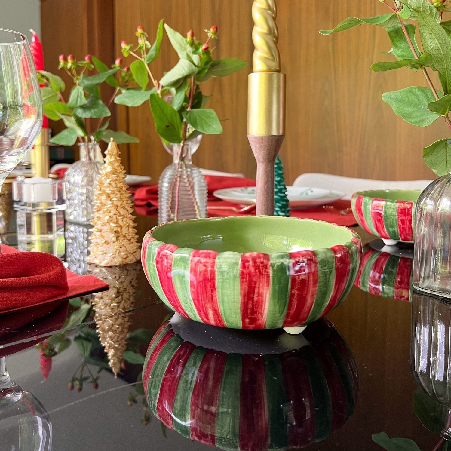 CASTIÇAL CERÂMICA ARTESANAL LAÇO VERDE NATAL