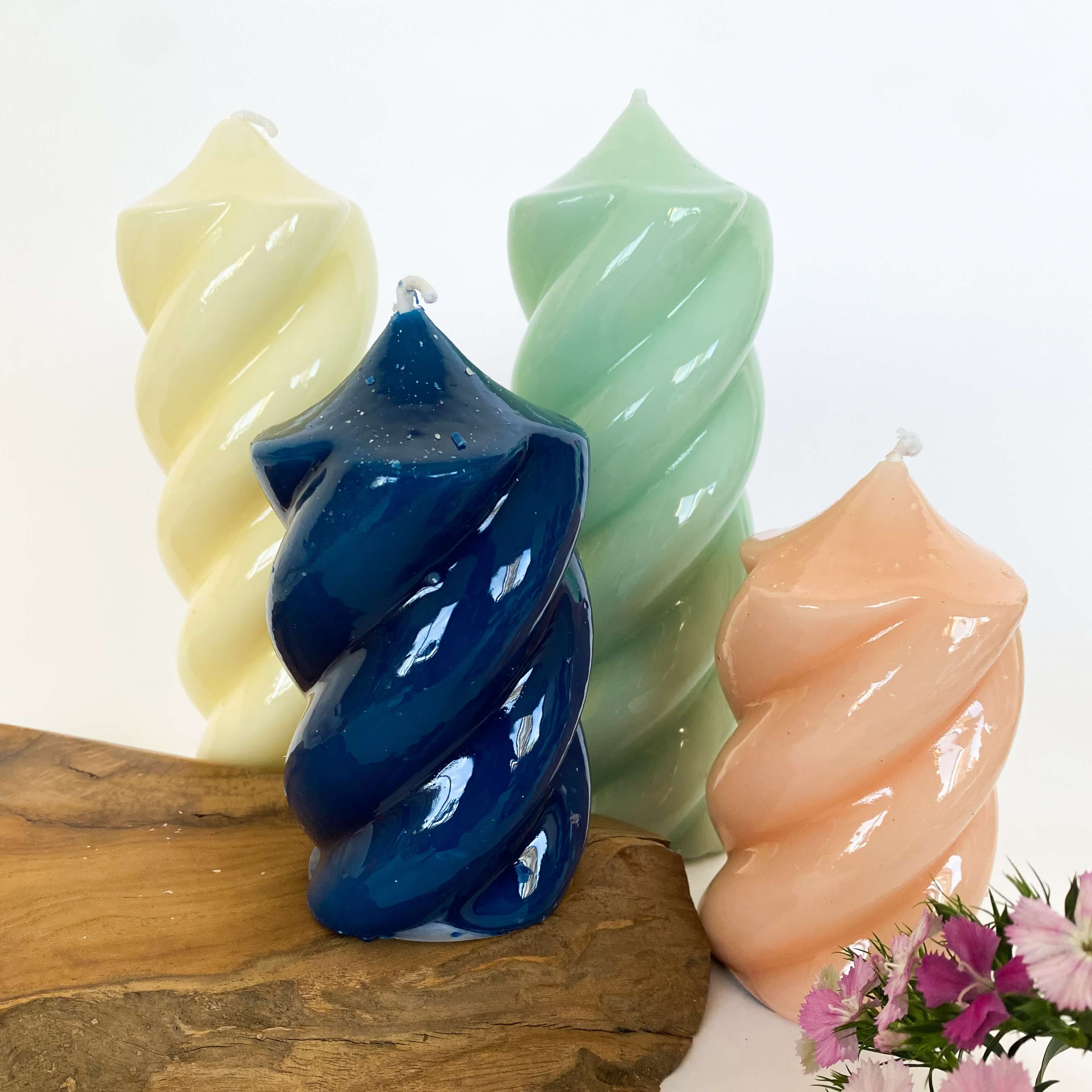 A vela super twist azul é uma peça linda que vai complementar sua casa. Ela foi pensada para dar um toque de sofisticação para a decoração mas com um formato espiral, o que deixa um visual moderno.