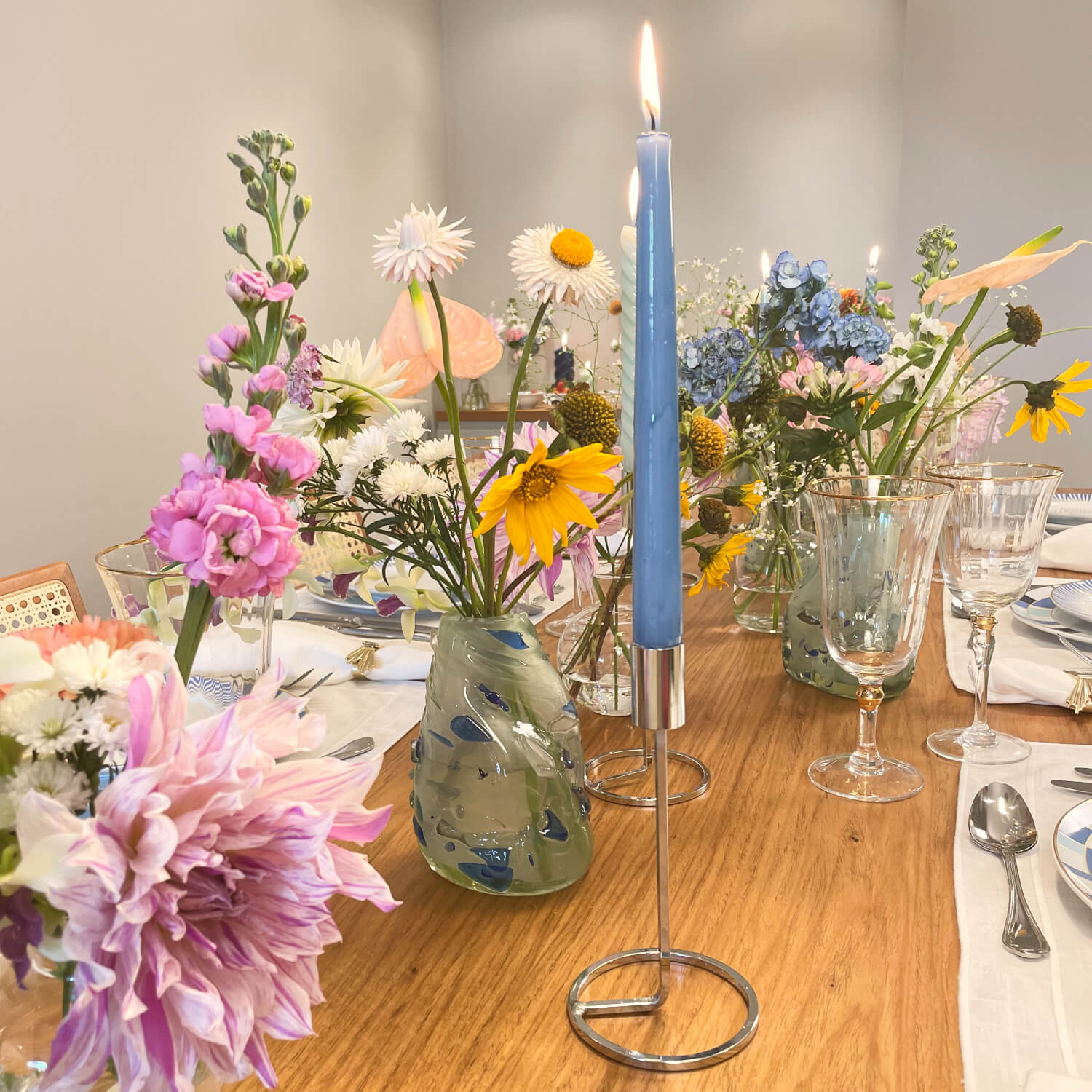 O azul anil é um tom de azul super clássico e que combina harmonicamente com diversas composições. As velas para castiçal cônica azul claro, é perfeita para você que gosta de ter cor na mesa sem ser muito chamativo. Use com o jogo americano e guardanapo de linho branco e para dar um toque de personalidade para sua mesa, combine com nossos vasinhos de vidro com flores rosinha e brancas, você vai ter uma mesa clássica e charmosa. Para a sala, use as velas para castiçal azul claro com a vela super twist azul marinho e verde água, use ou na mesa de centro ou em um aparador.