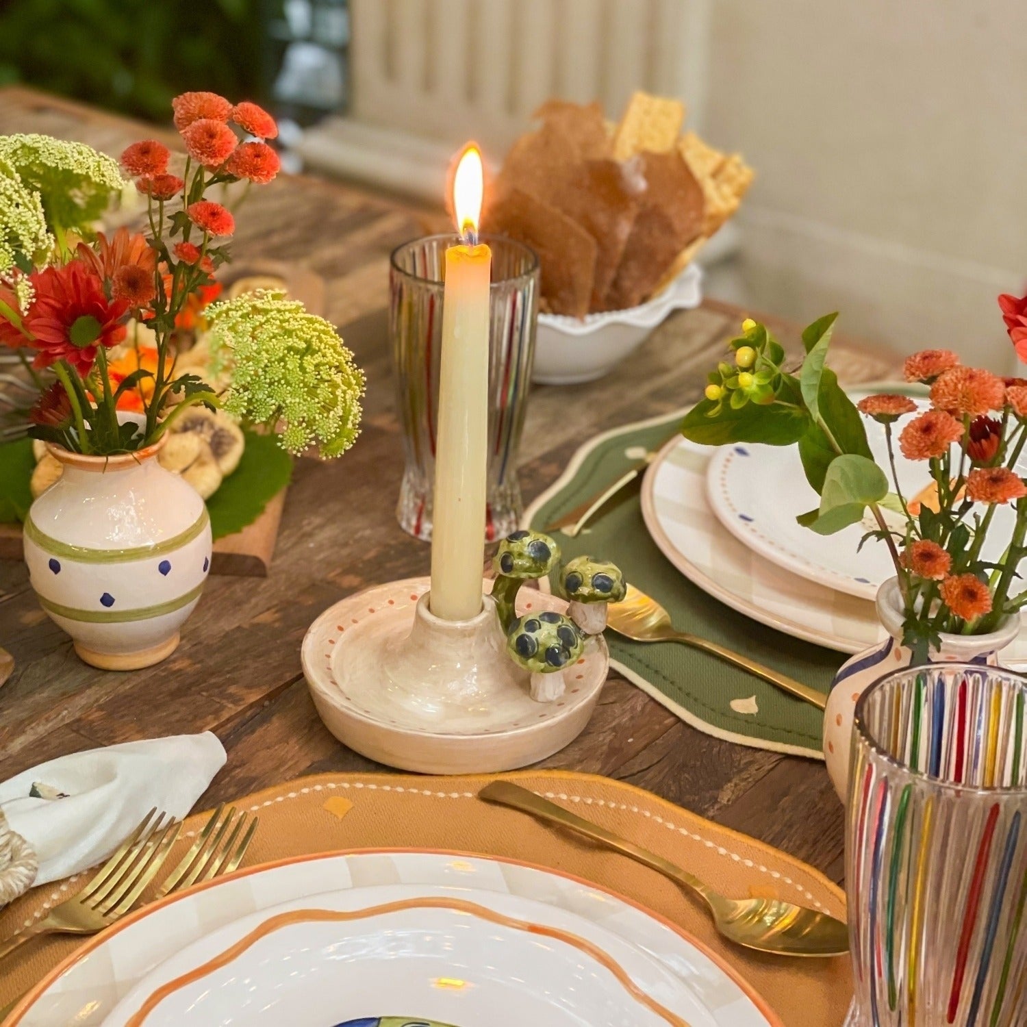 As velas para castiçal cônica marfim é em um formato e uma cor mais clássica, mas você pode ousar com ela, junte com as velas cônicas azul anil e lilás e faça uma composição bem divertida, use itens como o jogo americano e o guardanapo tropical para um almoço de domingo.