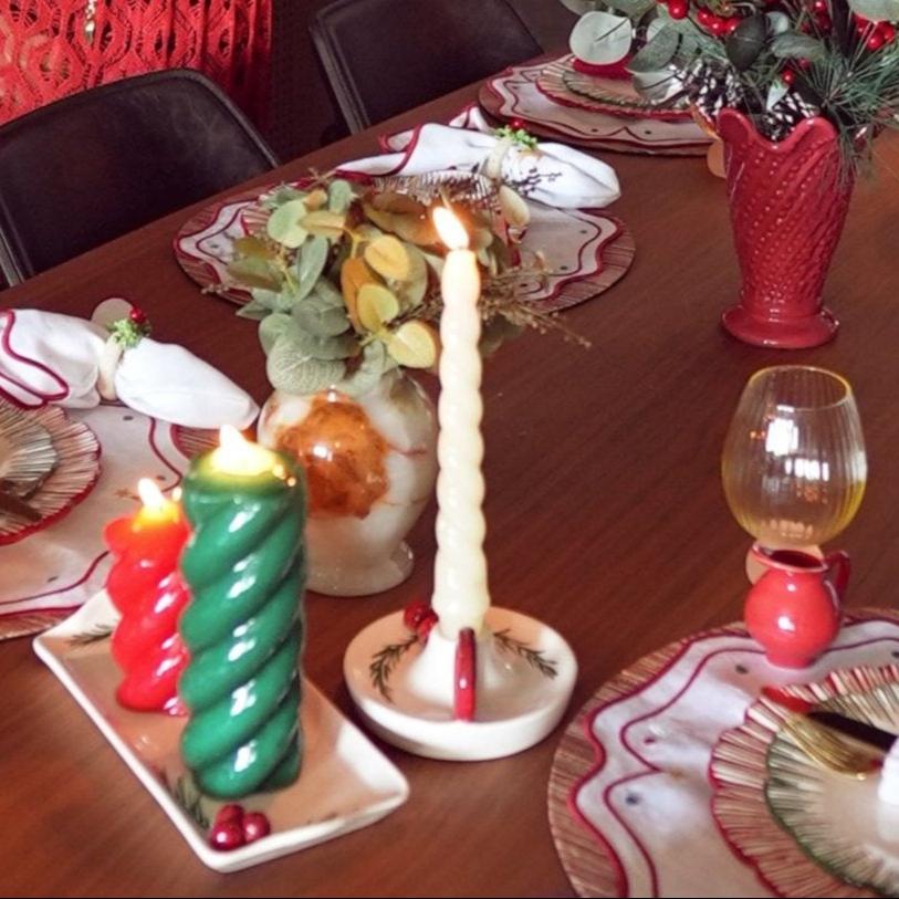 CASTIÇAL CERÂMICA ARTESANAL LAÇO VERDE NATAL
