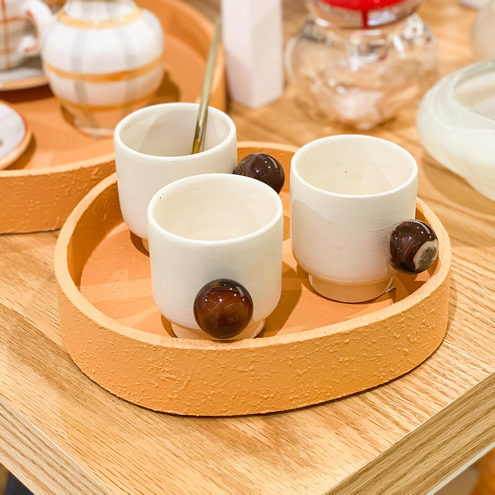 A junção dos dos materiais, em um design minimalista, torna essa peça sofisticada e super charmosa. Perfeita para serem expostas em um cantinho de café. Seu tamanho médio também possibilita o consumo de chás.