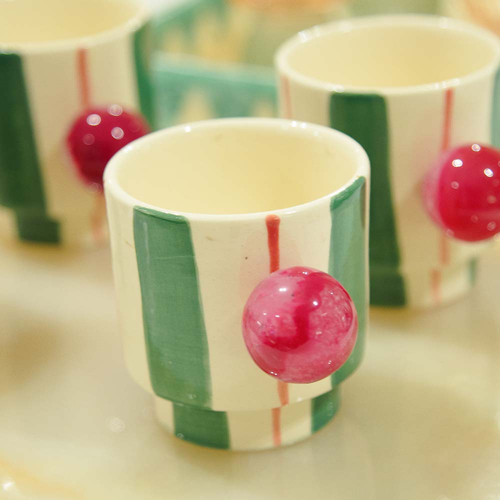 XÍCARA DE CERÂMICA ARTESANAL COM AGATA VERDE E ROSA